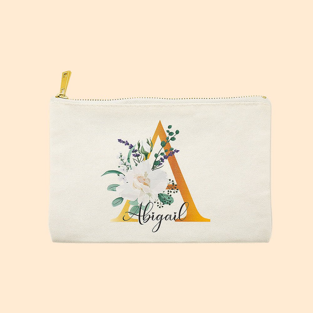 El nombre puede personalizarse en la capa exterior del neceser. En el centro de este neceser de maquillaje hay una inicial mayúscula dorada con flores. Cuando las damas de honor abran el neceser, verán las palabras que la novia dejó para expresar su gratitud a las damas de honor. Además, se puede llevar en cualquier momento del día de la boda, lo que resulta muy cómodo.