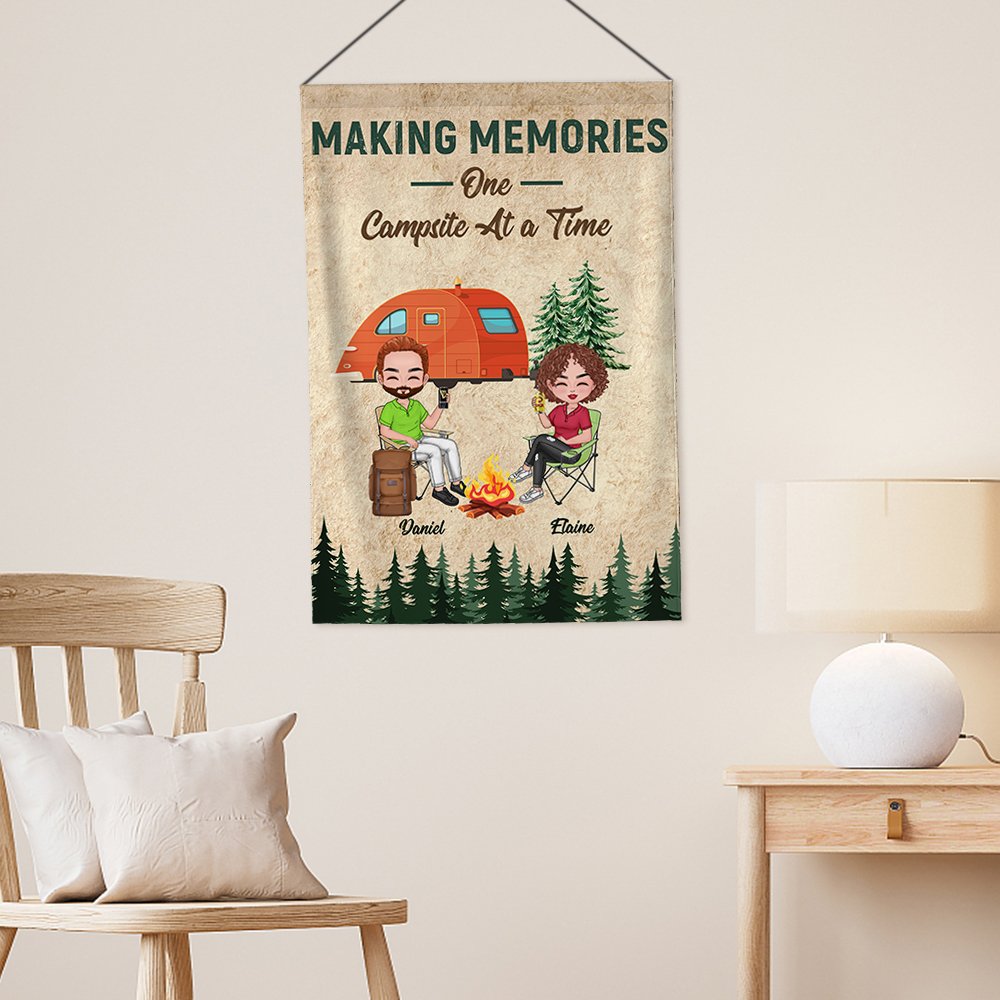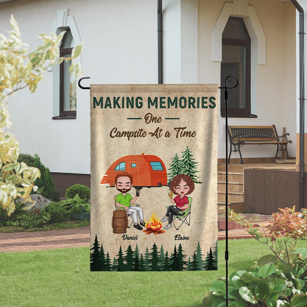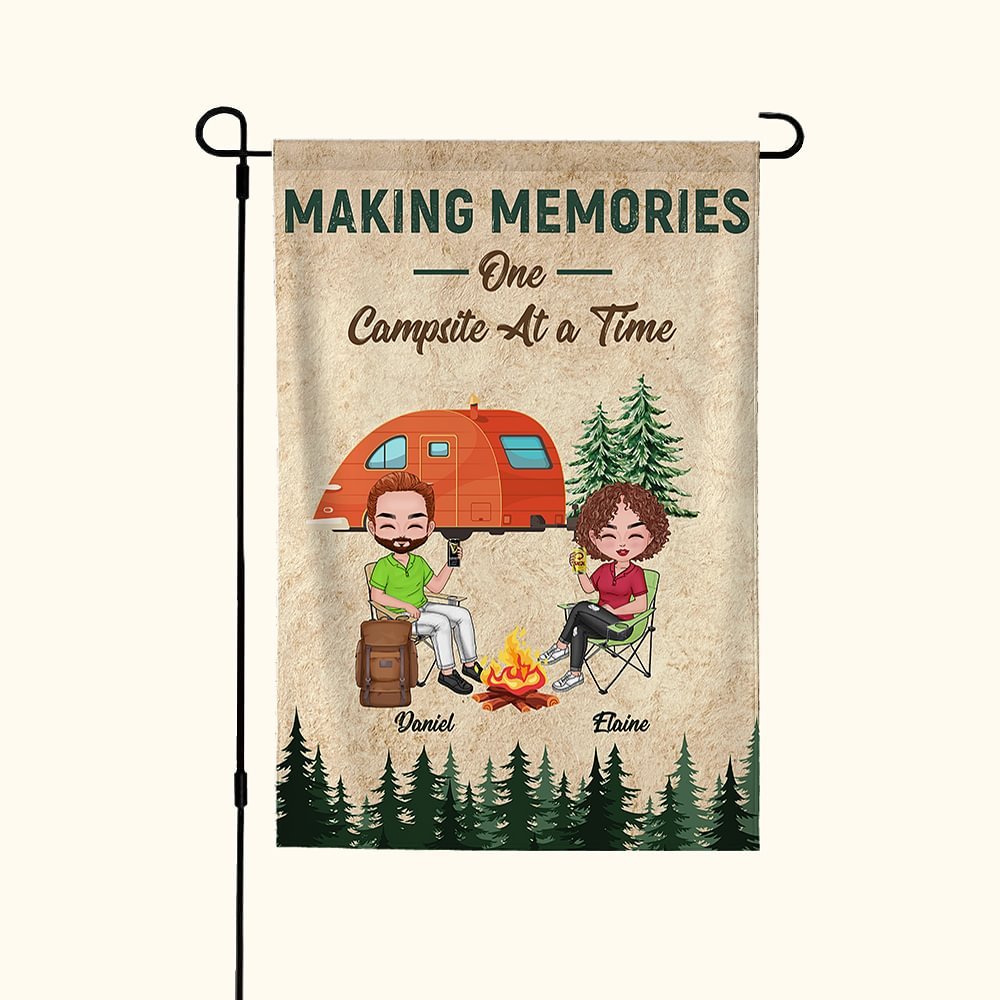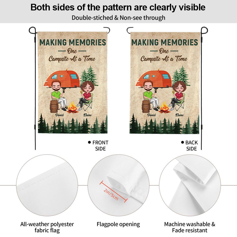 Bandera de jardín personalizada Making Memories One Campsite at a Time Regalo conmemorativo de aniversario para pareja