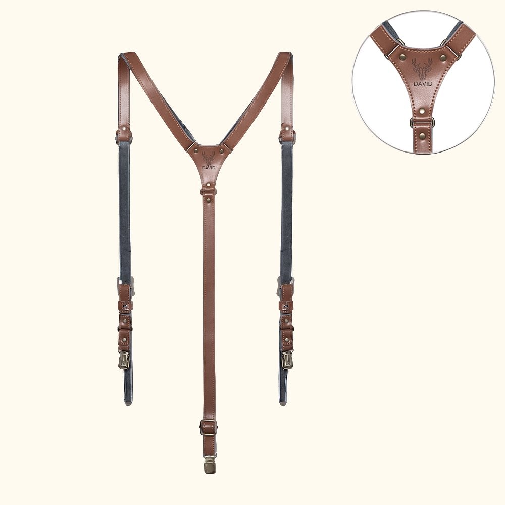 Nuestros tirantes personalizados de cuero de vaca con espalda en Y para hombre son un regalo único y pensado para los hombres especiales en tu vida. Se pueden personalizar con un logotipo, una inicial o una fecha, lo que te permite crear un accesorio verdaderamente único.