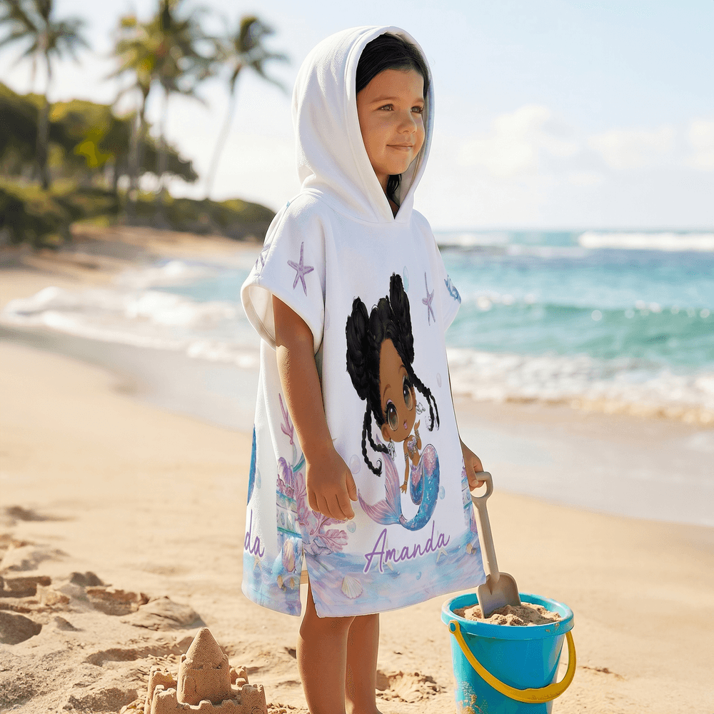 Toalla de playa con capucha de secado rápido personalizada con nombre Sirena Actividades al aire libre Fiesta en la playa Regalo de cumpleaños para niñas Familia