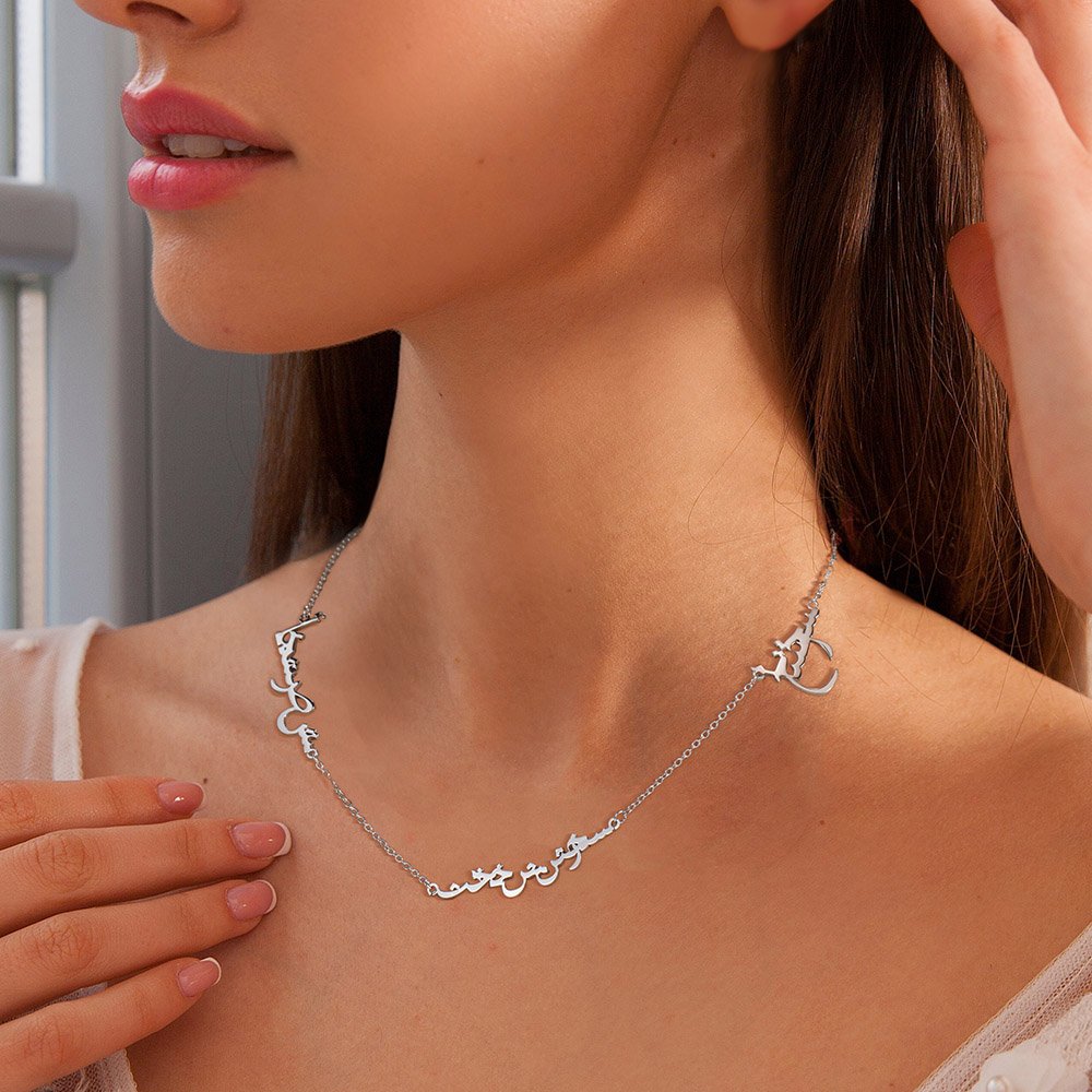 Este collar utiliza la lengua árabe para diseñar su nombre, usted puede elegir 1-3 nombres, y cada nombre crea una conexión emocional única, mostrando la conexión entre la familia, amigos o seres queridos. Hay 3 colores para que usted elija, y usted puede elegir de acuerdo a su preferencia. El diseño de este collar es minimalista, lo que desprende un temperamento elegante. Su estética elegante y sencilla lo convierten en una pieza atemporal.