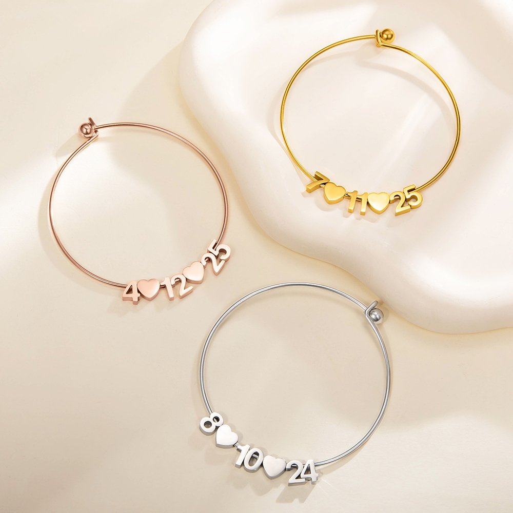 Esta pulsera tiene un diseño sencillo y elegante. El número colgante se combina con un elemento de corazón diseñado para transmitir un ambiente elegante y moderno. La fecha personalizada simboliza los momentos importantes de la vida de quien la lleva, y el elemento de corazón asegura su romanticismo, simbolizando el amor y el afecto.