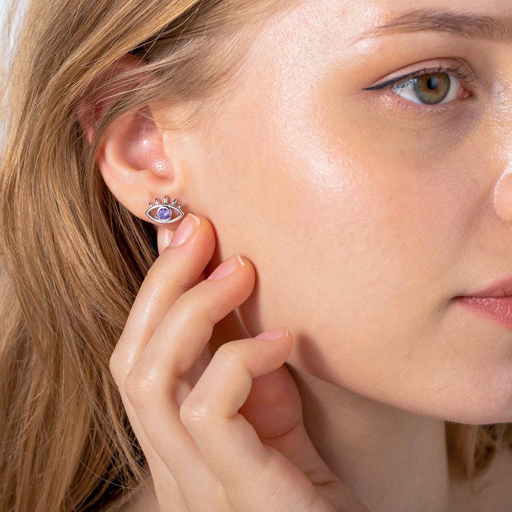Este delicado y sencillo pendiente combina el antiguo símbolo del mal de ojo con la moda moderna. Lleva incrustada la piedra de nacimiento, que puedes elegir según tu mes de nacimiento, cada una brilla con una luz única, como una estrella guardiana, para aportarte un encanto y una confianza infinitos.