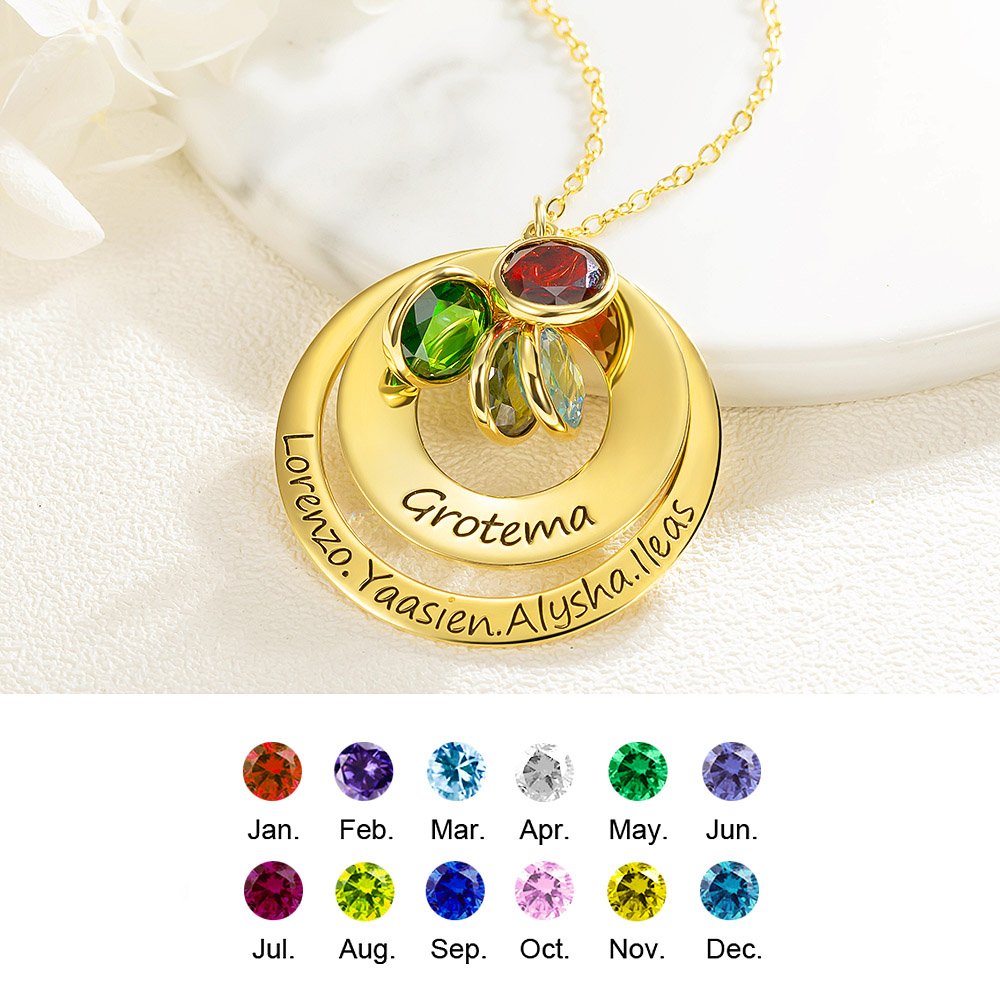 Lo que hace que este collar para madre e hijos sea realmente especial es la posibilidad de personalizarlo. Puedes grabar el nombre de tu madre o abuela y el de cada uno de sus hijos en el colgante circular y seleccionar sus piedras de nacimiento, creando una pieza de joyería personal y sincera que tu madre apreciará para siempre. Es una excelente manera de mostrar su amor y agradecimiento por todo lo que ha hecho por usted y su familia.