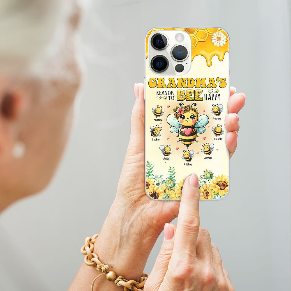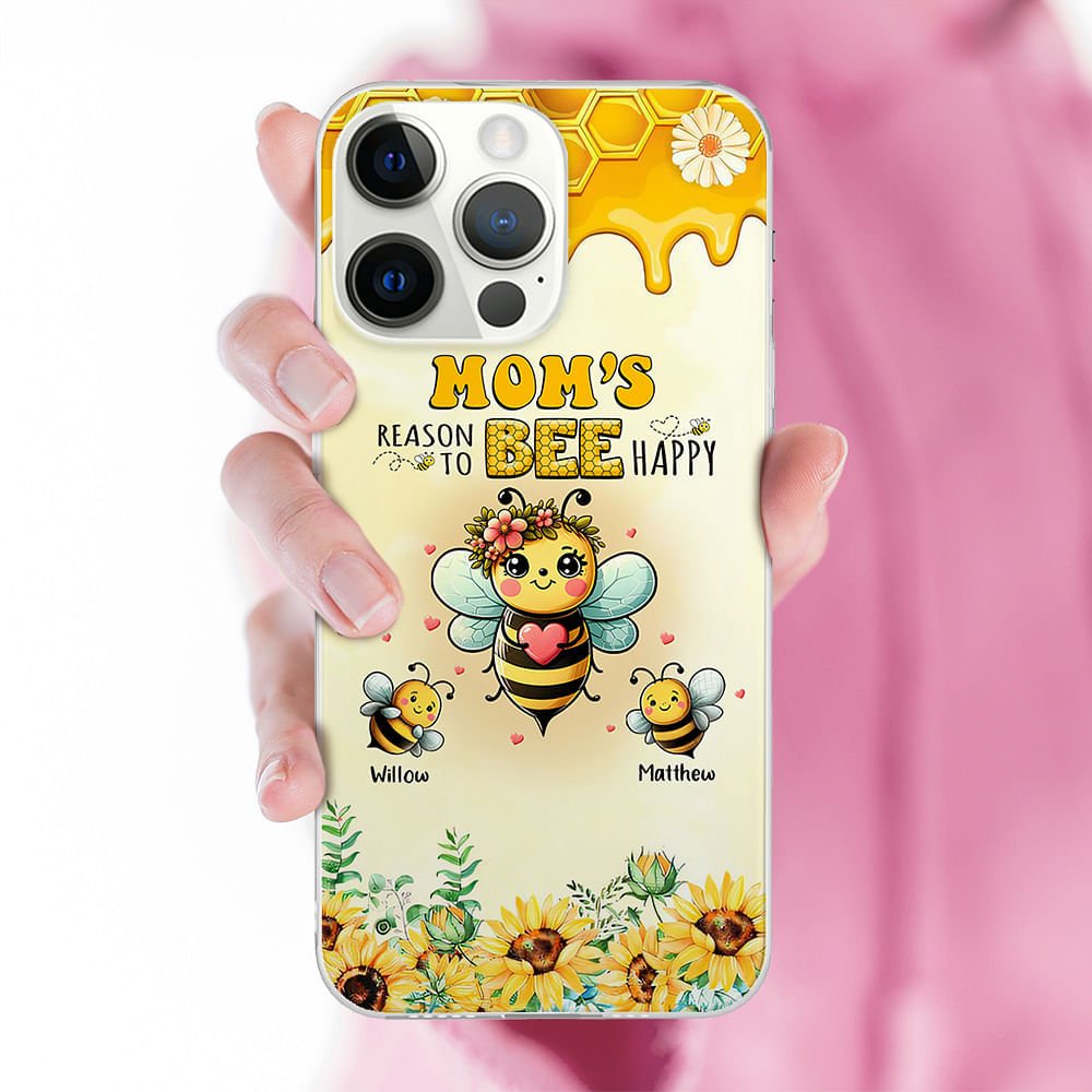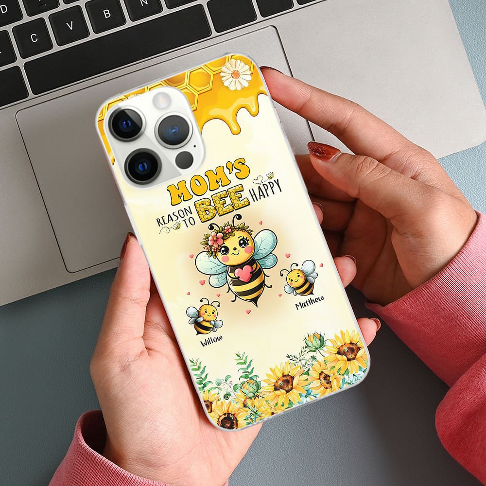 Esta funda de teléfono tiene como tema una cálida familia de abejas y combina ingeniosamente elementos de miel, girasoles y abejas trabajadoras. Las palabras como "Mom's reason to bee happy" que aparecen en la funda del teléfono son como la llamada del hogar, que hace que la gente sienta una calidez infinita. Cada abejita representa a un miembro de la familia, y su nombre está impreso al lado para que cada contacto pueda sentir el calor y el cuidado del hogar.