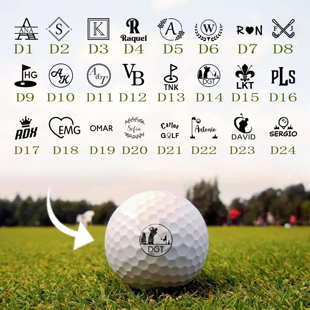 Al incorporar elementos deportivos como pelotas y palos de golf, junto con motivos decorativos como monogramas, corazones y coronas, el diseño transmite una sensación de deportividad y sofisticación. Los patrones y colores personalizables, desde el clásico blanco y negro hasta colores vibrantes, se adaptan perfectamente a tu estilo, convirtiendo el marcado de pelotas en una expresión única y en una forma de mostrar tu personalidad en el campo.