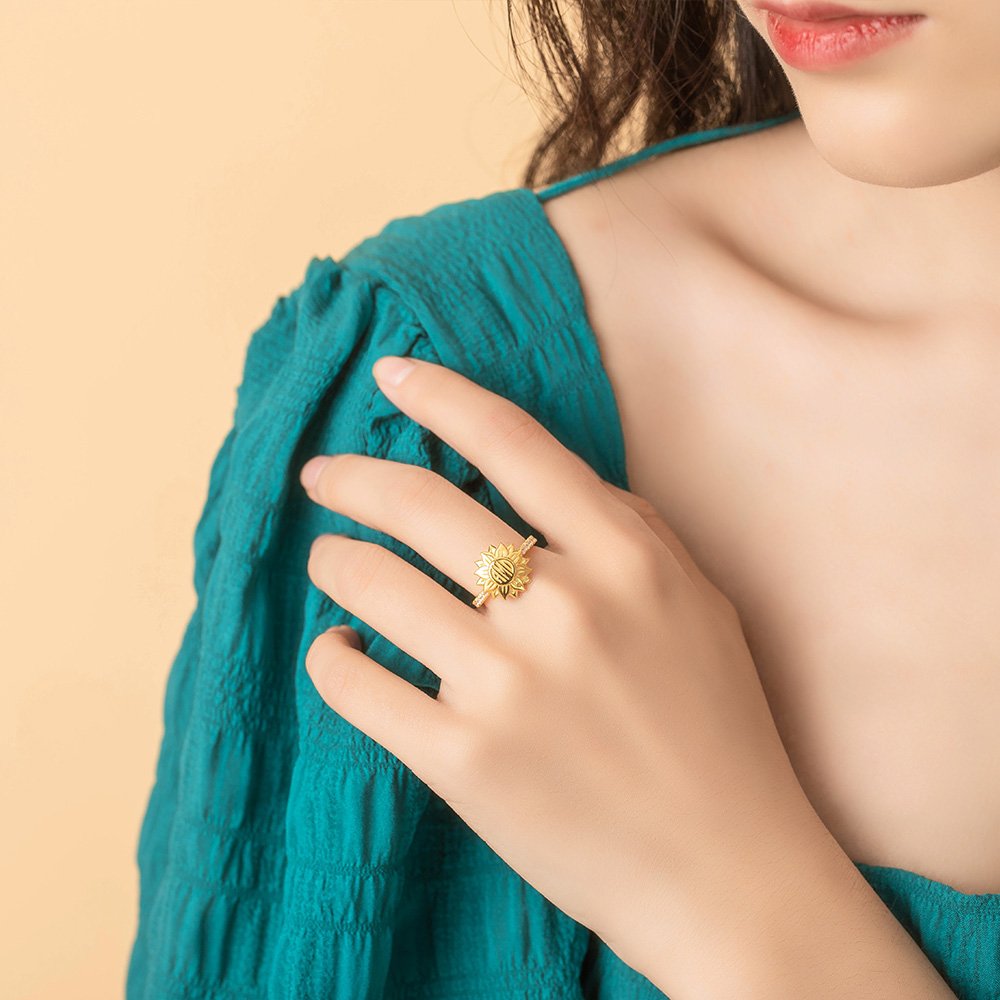 -Inspirado en la feminidad y la delicadeza de las flores, este anillo Callie tiene una forma única de hacerte conectar con los girasoles. El girasol representa el coraje de perseguir su propia felicidad, dándole una sensación de sol. Activo y firme, adecuado como regalo para mujeres sabias y fuertes.