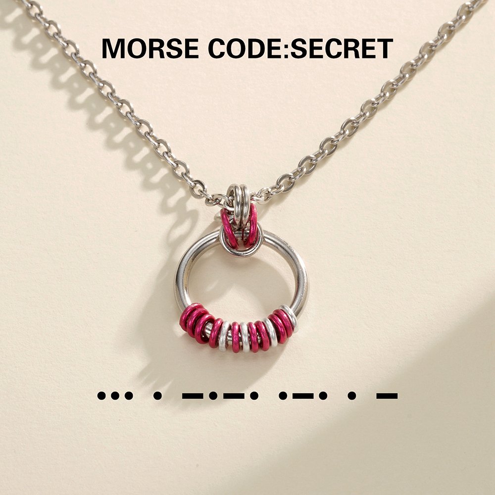 Este collar tiene un diseño único con un colgante circular, simplicidad y ambiente. Y lo que lo distingue es el mensaje oculto en código Morse, puede mostrar sus sentimientos el uno al otro a través de código Morse, sacando el amor oculto de la mejor manera posible.