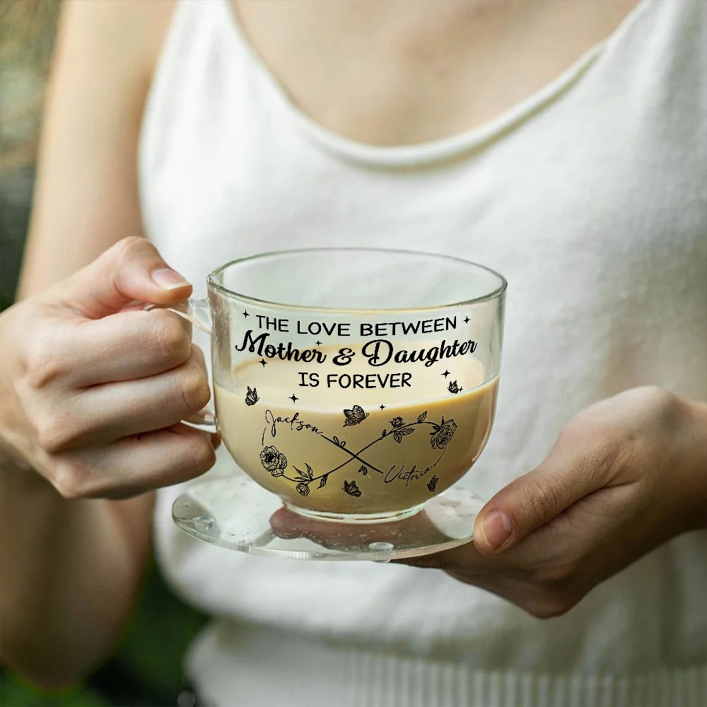 Presenta un impresionante símbolo de infinito, que representa el vínculo eterno entre madre e hijo. El diseño incorpora a la perfección dos flores y nombres del mes de nacimiento, lo que le permite personalizar cada flor y nombre para reflejar los meses de nacimiento únicos de la madre y el niño. Este cuidado e intrincado diseño hace que la taza no sea sólo una pieza funcional.