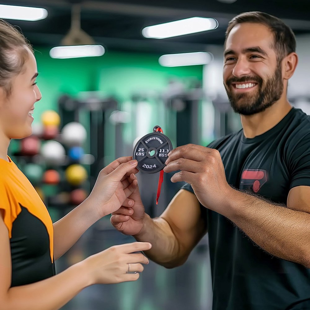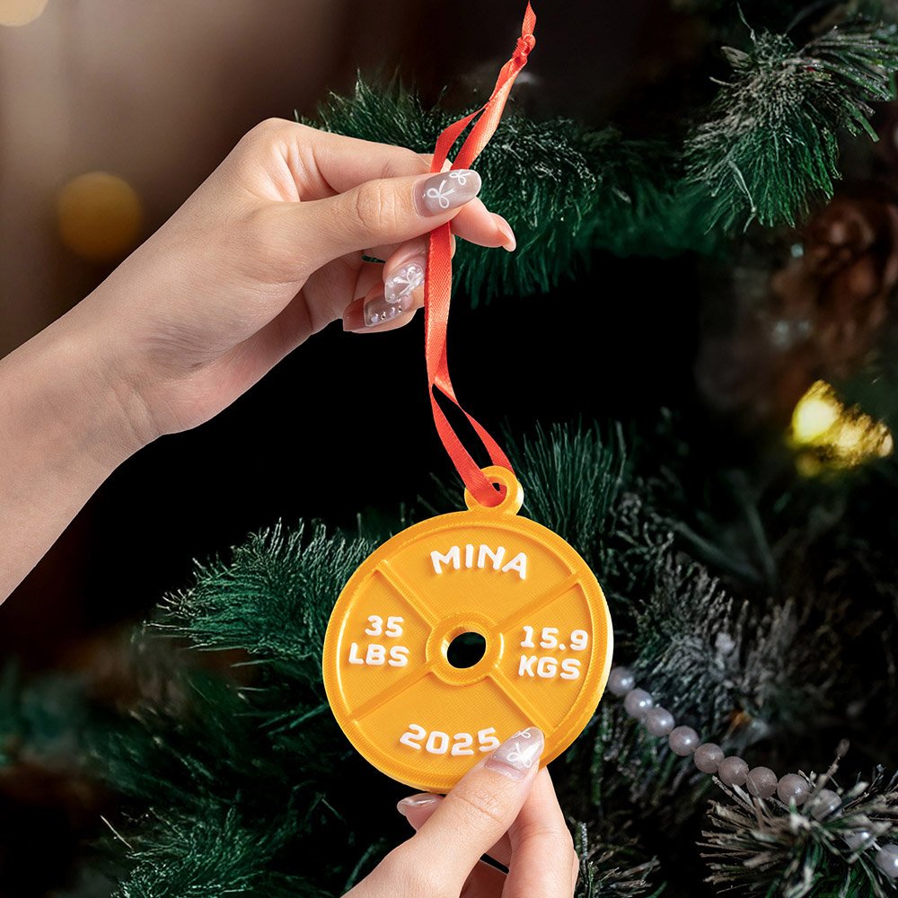 Este adorno combina ingeniosamente el fitness con el ambiente festivo, inspirado en la forma de plato de barra que tanto gusta a los entusiastas del fitness, y es único. Puedes elegir el peso y añadir un texto con un significado especial, combinado con una variedad de colores, para que brille en el árbol de Navidad y se convierta en un llamativo punto de atracción.