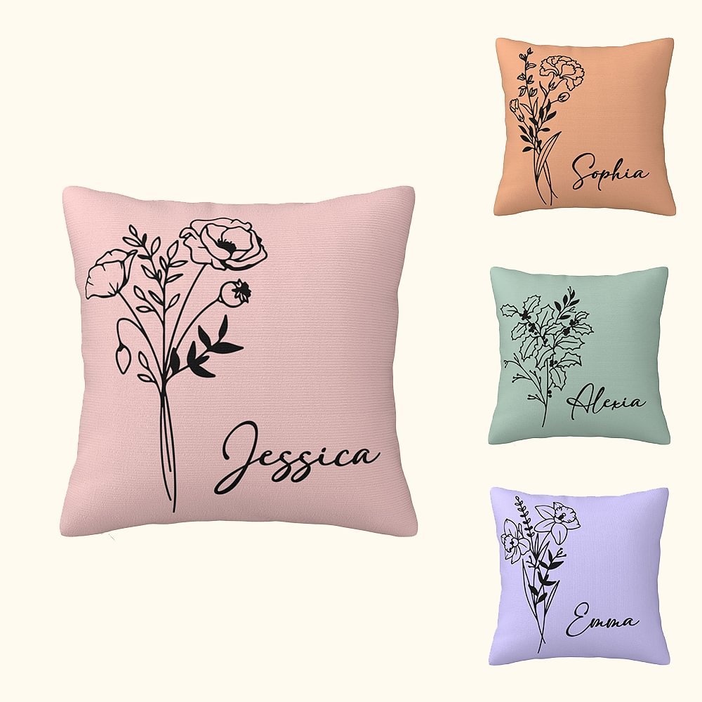 Esta funda de almohada está impresa con un estampado de flores de cumpleaños retro y elegante. Puedes elegir el estilo de flor de cumpleaños según tu mes de nacimiento. También puede personalizar el nombre para expresar su gratitud y amor por su madre, abuela o esposa.