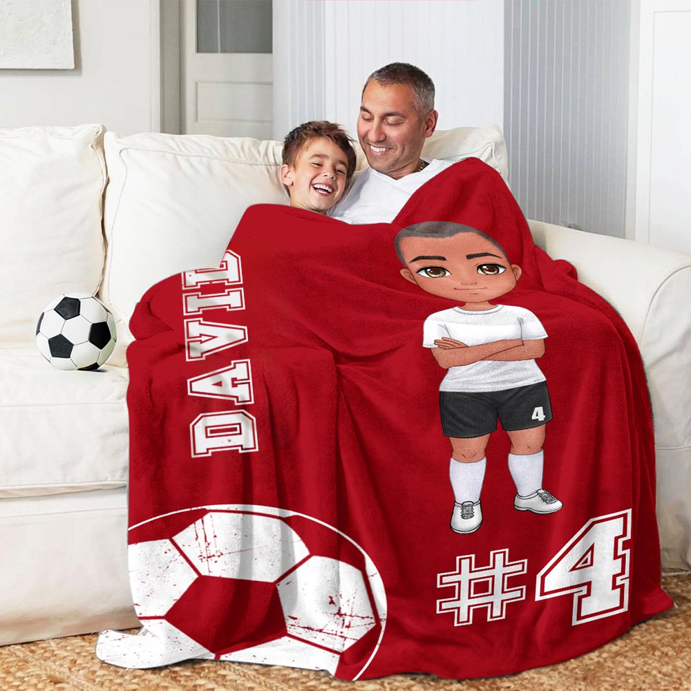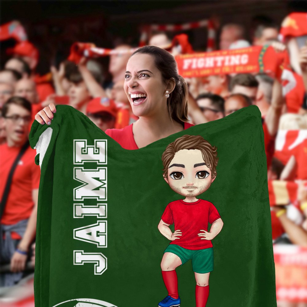 Esta suave manta demuestra plenamente la pasión y la personalidad de los aficionados al fútbol. Cada manta puede personalizarse según las necesidades del cliente, con hasta 23 colores para elegir. Puedes añadir tu nombre y número para hacerla única y mostrar tu personalidad. Elijas la imagen de dibujos animados adecuada para hacer de la manta no solo un artículo práctico, sino también una artística decoración para el hogar.