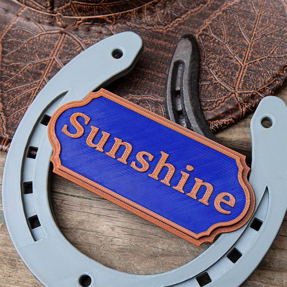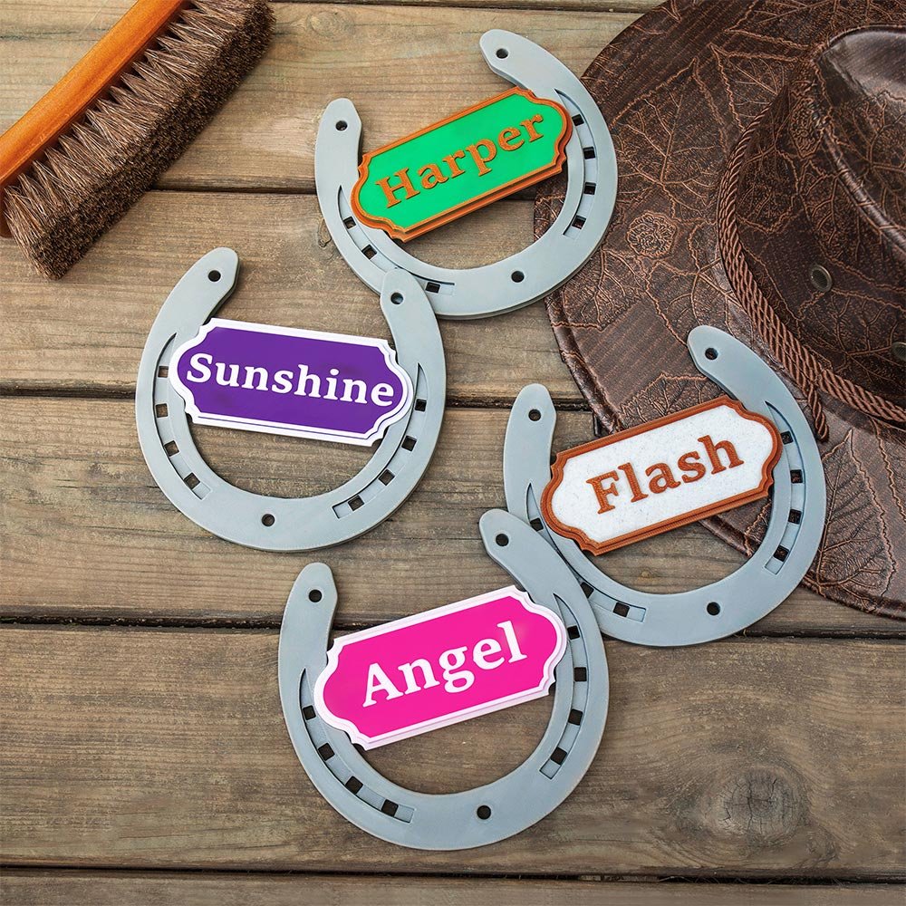 Inspirado en el patrón único de las herraduras, este diseño combina a la perfección los elementos ecuestres clásicos con la moda moderna. Cada herradura admite nombres personalizados, lo que le permite personalizarla con el nombre de su querido caballo o su apodo, haciendo que su establo sea realmente único. Con 23 colores de fondo y combinaciones de colores de nombre para elegir, puede crear un aspecto impresionante que refleje su personalidad y su pasión por la vida ecuestre.