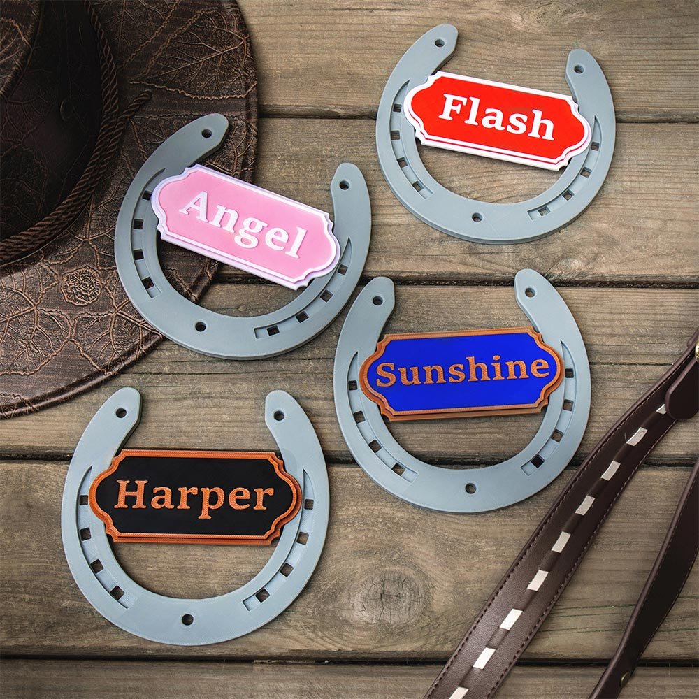 Esta placa con nombre de herradura está diseñada para colgarla en la puerta de su establo, permitiéndole reconocer fácilmente a su querido caballo de un vistazo. Resuelve eficazmente el problema de confundir los caballos a la vez que añade un toque de estilo a su establo. Transforme su espacio en algo más que una zona funcional: cree un entorno cálido y acogedor lleno de personalidad y emoción.