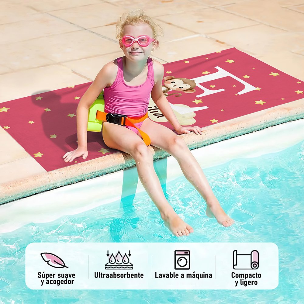 Esta toalla de playa está estampada con nubes blancas, estrellas y adorables animales de dibujos animados, cada uno de los cuales es realista y lleno de diversión infantil. Hay 46 animales diferentes para elegir, incluidos cebras, leones, cocodrilos y más, y puedes personalizar el nombre y la inicial de tu hijo para que el regalo sea único.