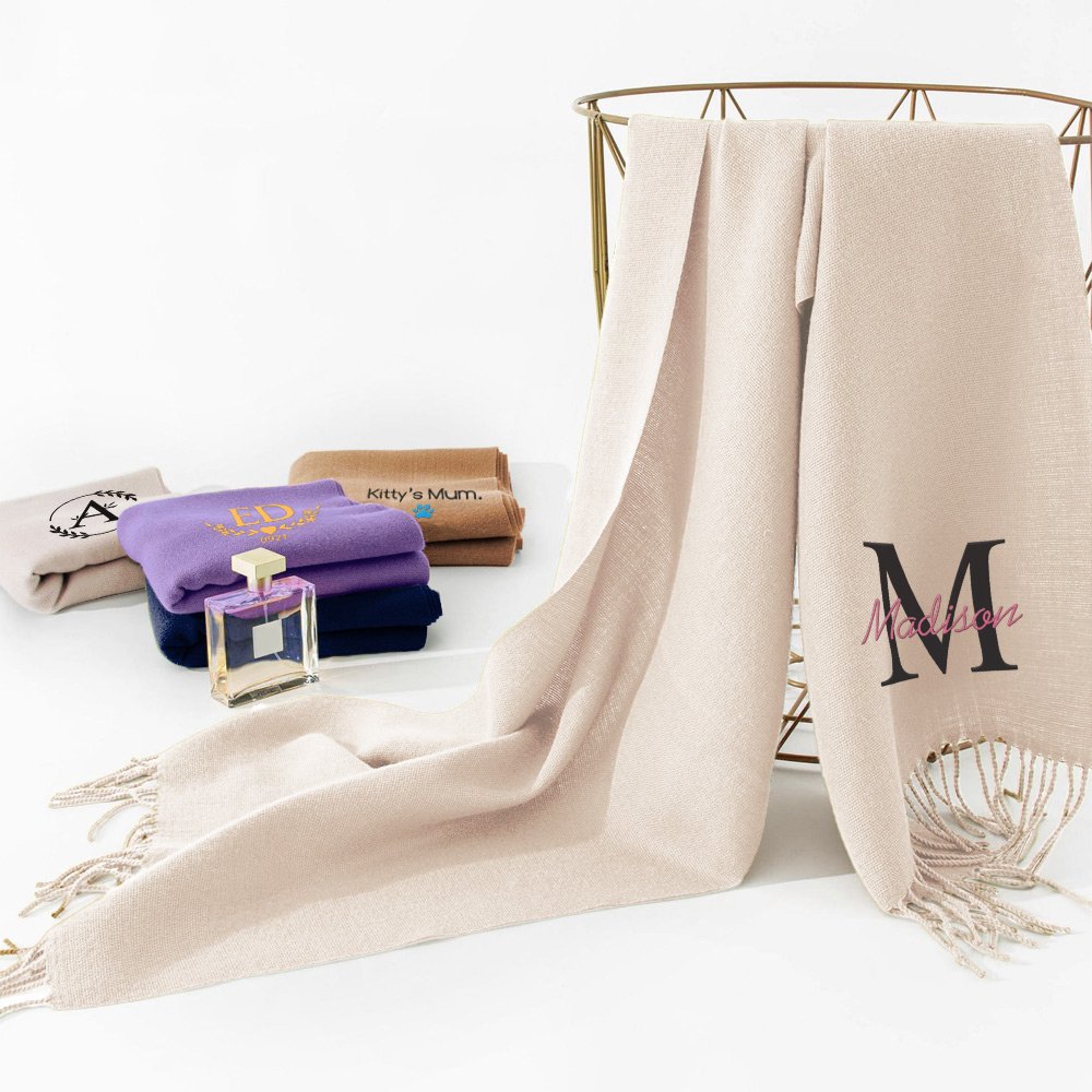 Presenta elegantes iniciales y nombres bordados con 27 opciones de color de hilo. Elija entre 12 patrones de estilo distintivos para su preferencia personal. Cada bufanda se personaliza para crear un accesorio de invierno único.