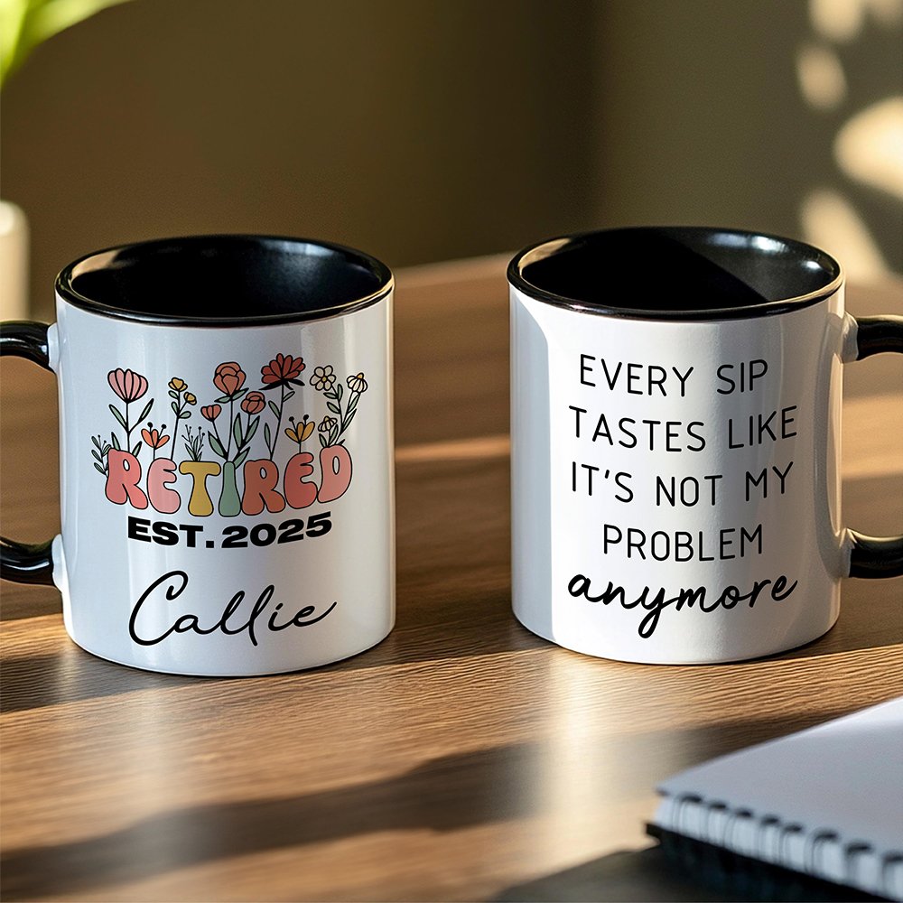 Esta taza está pensada para jubilados. Lo más destacado es que puedes personalizar tu nombre y el año de jubilación. Esto puede hacer que la taza sea única. Ya sea para regalar a un amigo que está a punto de jubilarse o como recuerdo de jubilación para uno mismo.