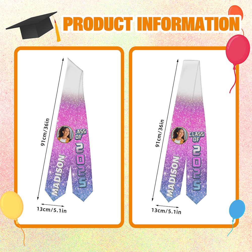 Nuestros fajines están disponibles en una gran variedad de colores, como purpurina, rayas y otros estilos, que utilizan ingeniosamente elementos de graduación. También puede personalizar su nombre en el fajín para hacerlo más exclusivo. Puede elegir un fajín plano o en punta. El diseño es sencillo y elegante, a juego con la combinación de colores de la universidad, que es a la vez moderno y conmemorativo, y muestra a la perfección la personalidad y los logros de los graduados.