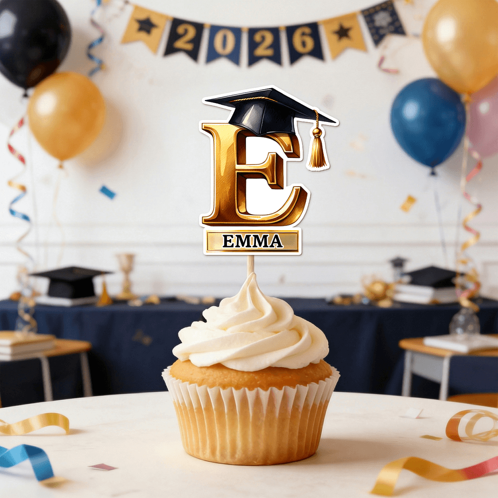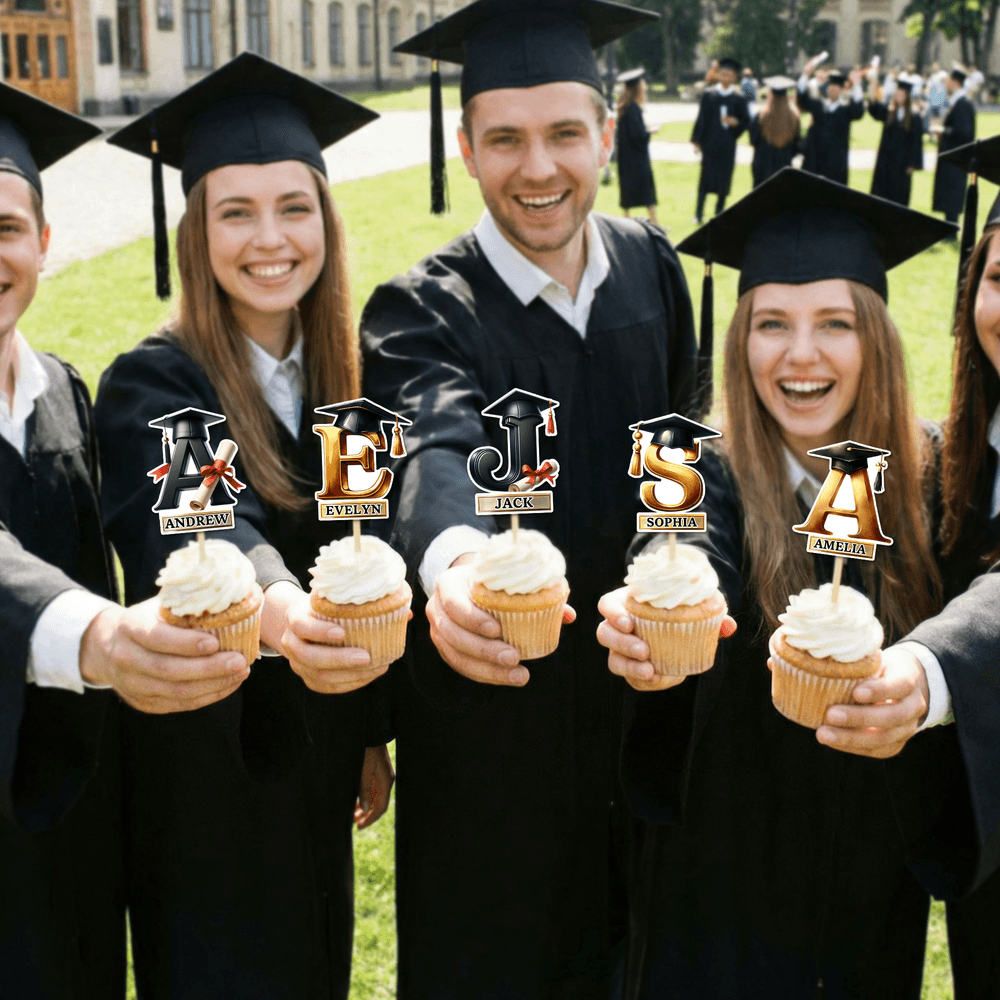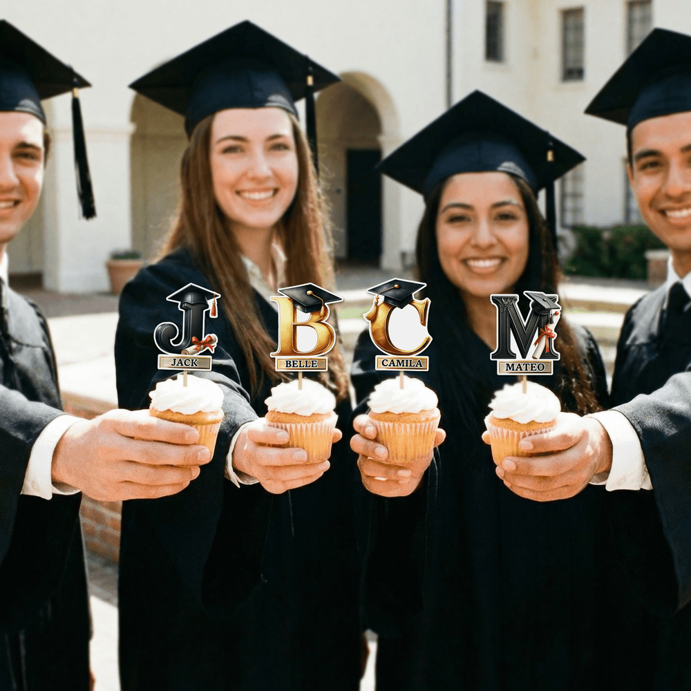 Con motivos de birretes y diplomas de graduación e impresión personalizada de iniciales y nombres en tonos negros y dorados de primera calidad, estos adornos complementan a la perfección la decoración de las fiestas de graduación. Se convierten en el punto culminante de los cupcakes tanto en las reuniones de clase como en las celebraciones familiares, añadiendo un toque especial y memorable al gran día.