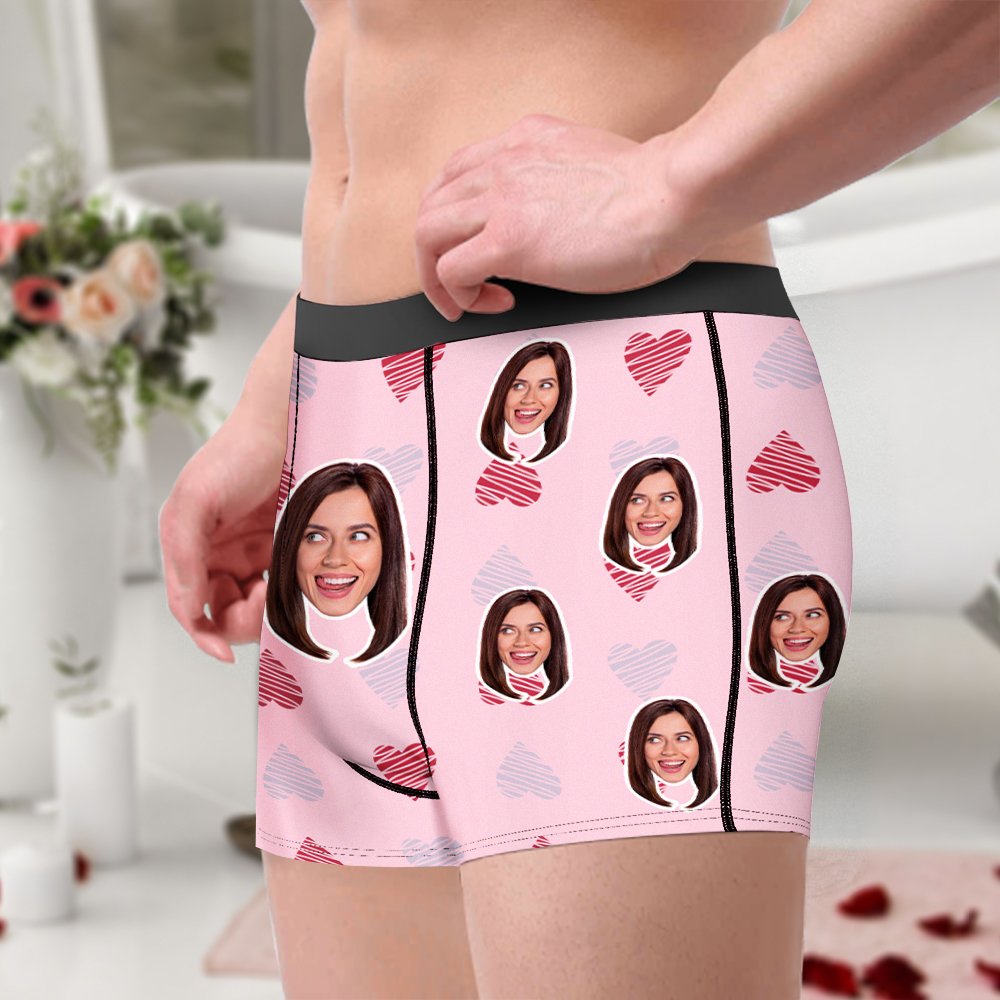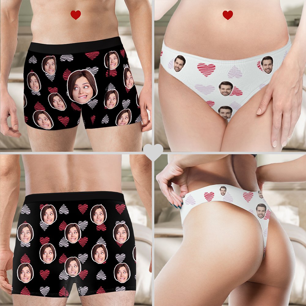 Este conjunto de ropa interior, con el tema del amor, combina inteligentemente el patrón de amor de líneas y el diseño de fotos de personas. Cada par de ropa interior se puede subir de acuerdo a sus necesidades, por lo que este regalo único, y profundizar en la conexión exclusiva y dulces sentimientos entre la pareja.