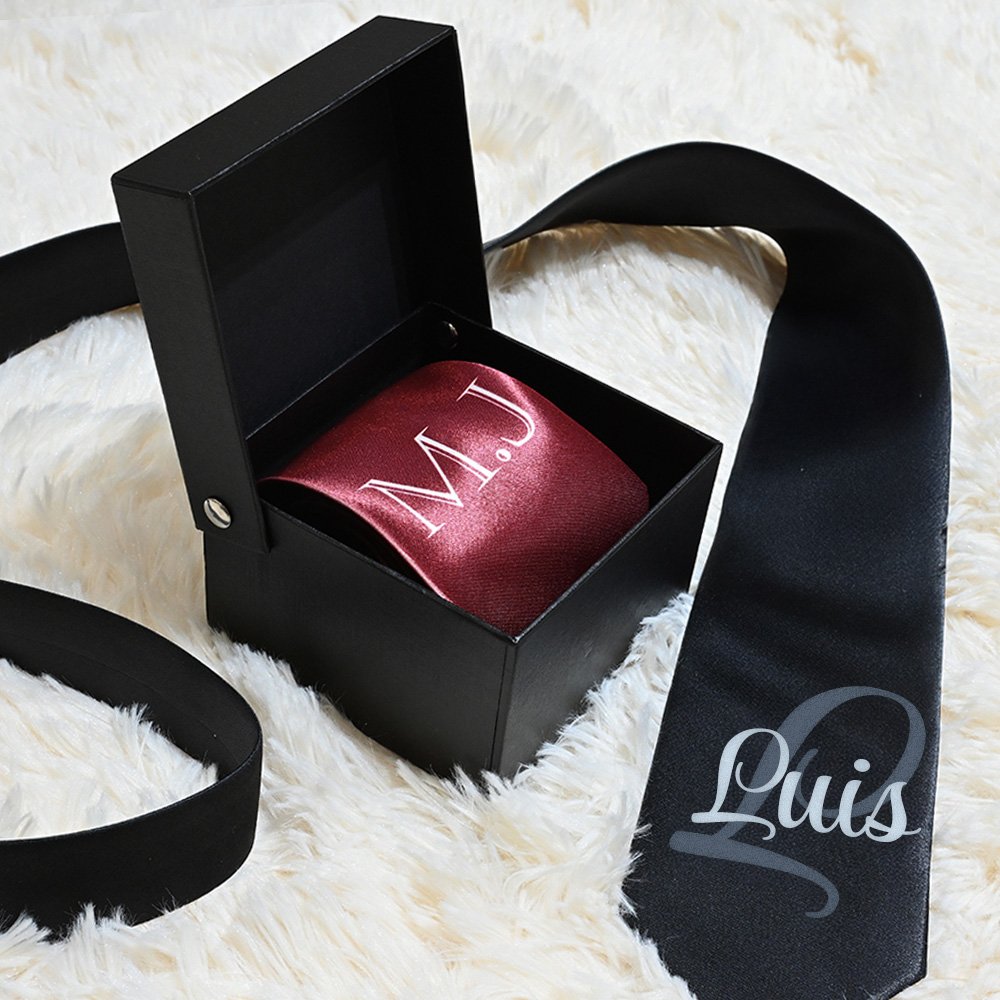 | Área personalizada: | Corbata - impresión por transferencia de monograma Caja - impresión UV frontal |