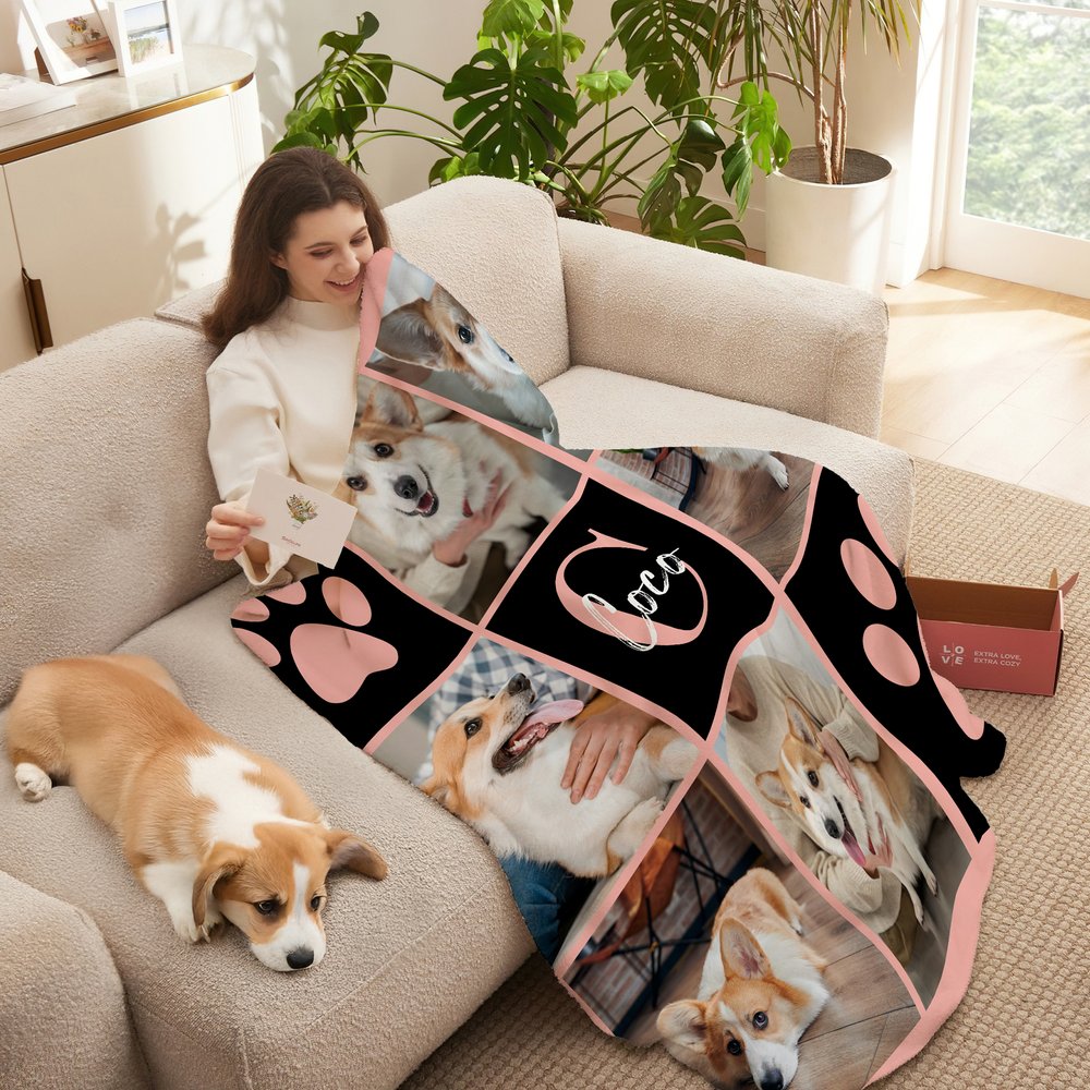 Admite el diseño personalizado de 6 preciosas fotos, con personalización exclusiva de nombres e iniciales, para que cada centímetro de la manta se convierta en portador de recuerdos exclusivos. Deja que cada lindo momento de la mascota cobre vida y da calidez emocional al uso diario.