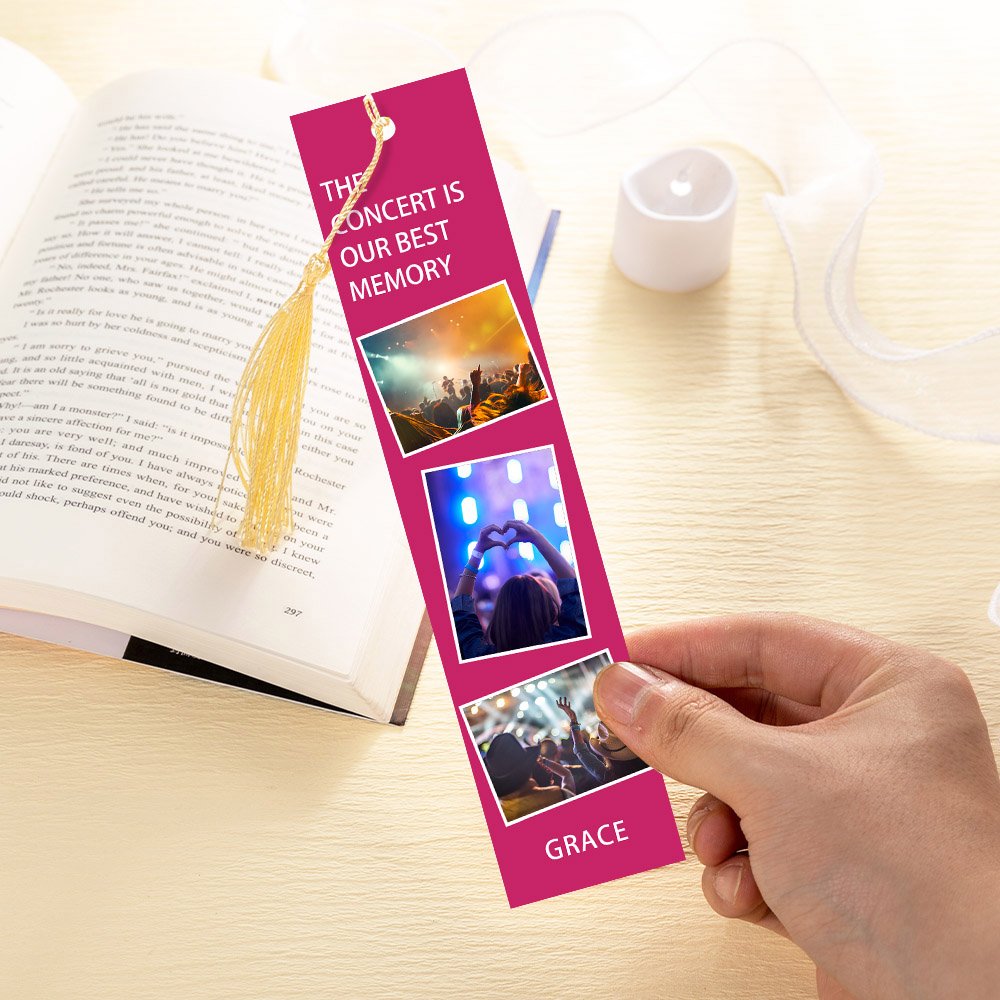 Este marcapáginas presenta un diseño multicolor único que puede personalizarse con tres fotos, un nombre y un mensaje significativo. Esta personalización permite que el marcapáginas refleje la vida de una persona y cree un recuerdo duradero que capture sus recuerdos más preciados. Está diseñado para conservar recuerdos alegres y entrañables para todos.