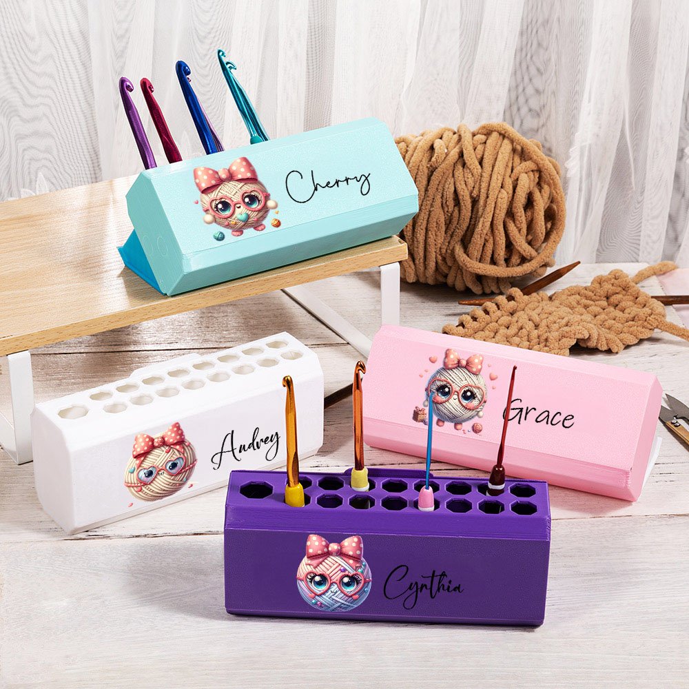 Si buscas una forma elegante y práctica de organizar tus agujas de ganchillo, esta caja para guardar ganchillos es una gran elección. La caja tiene 12 dibujos animados de ovillos para que elijas el que más te guste, y se puede personalizar con tu nombre para darle un toque único. La parte delantera y trasera de la caja están disponibles en diferentes colores, lo que le permite elegir una combinación de colores que se adapte a su estilo o a la decoración de su estudio.
