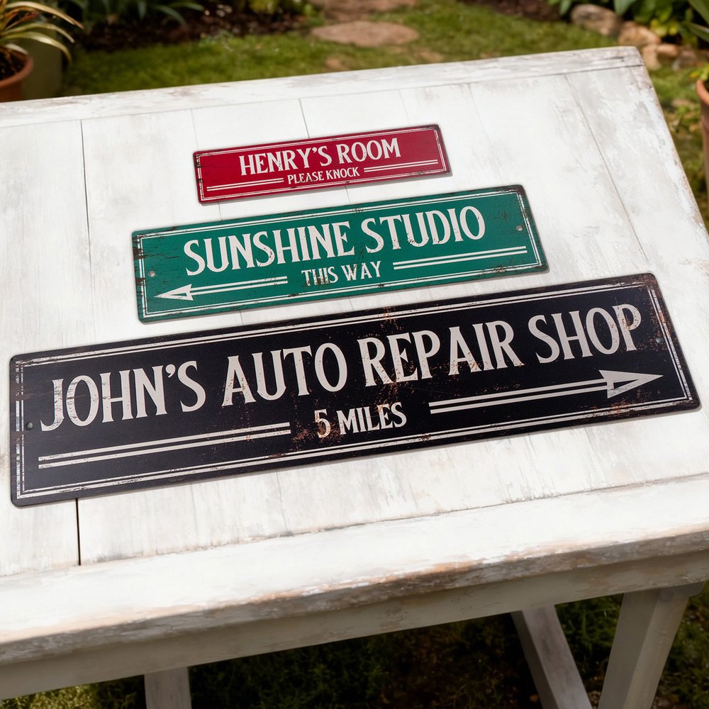 Este cautivador letrero presenta un óxido meticulosamente simulado y bordes desgastados, añadiendo un encantador aire vintage que evoca una sensación de historia y carácter. Puedes personalizarlo con dos líneas de texto, como nombres u otros detalles personales, lo que lo convierte en una pieza de decoración única que refleja tu estilo individual. Perfecto para quienes aprecian la estética rústica o de granja, realza cualquier espacio con un toque cálido y nostálgico.