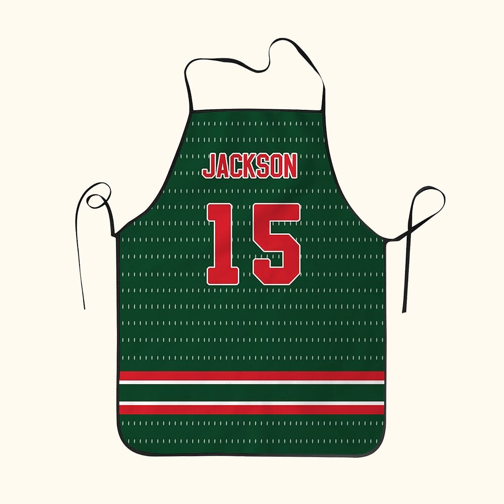 Destaca en la cocina con nuestro delantal deportivo multicolor personalizado. Con un vibrante diseño de jersey, este delantal garantiza que todo el mundo sepa quién es el mejor chef en cualquier fiesta o reunión familiar.