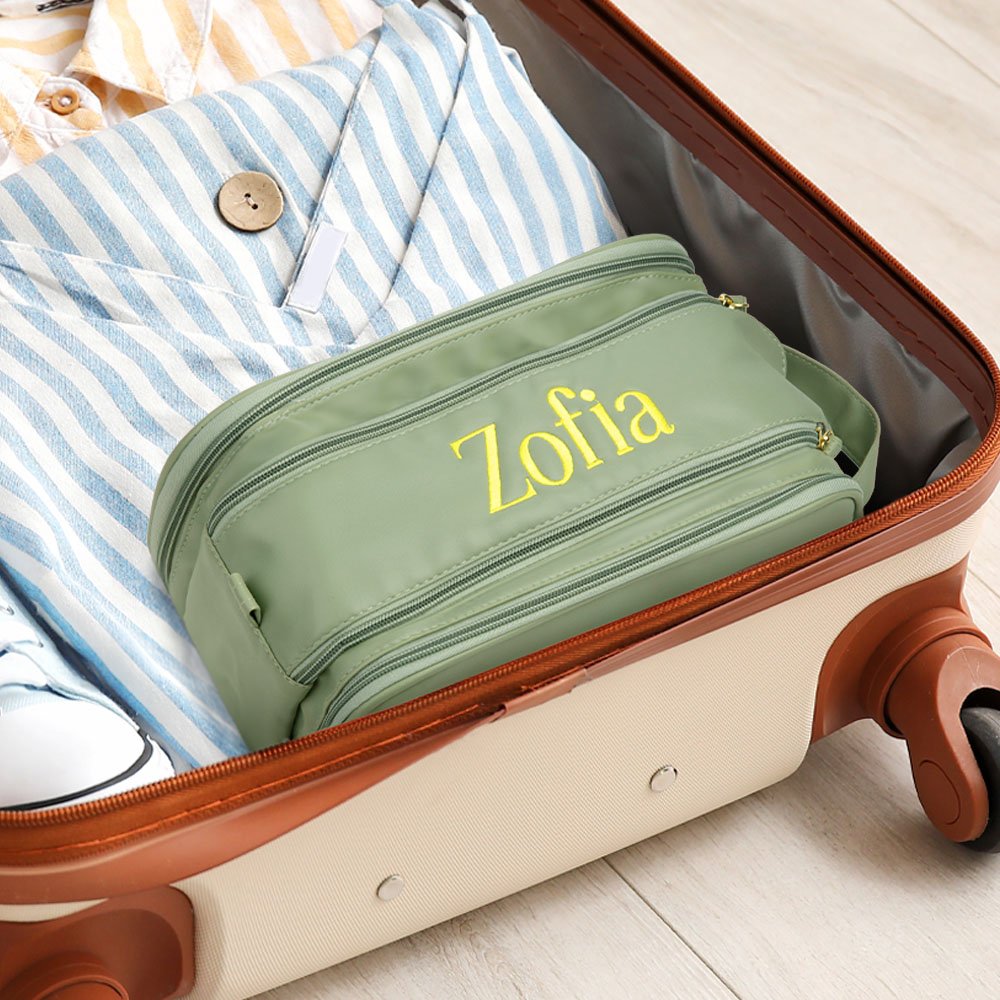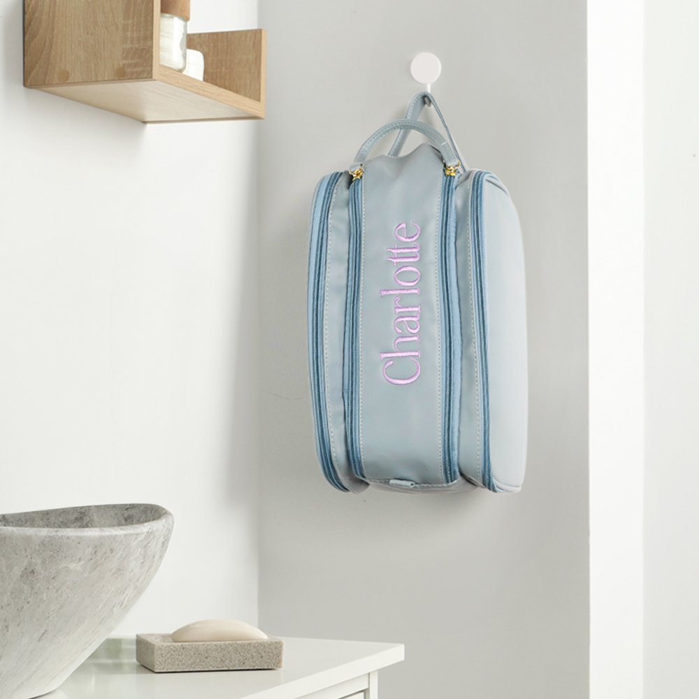 Este neceser de maquillaje presenta un diseño estilizado y elegante. El diseño sencillo y suave del bordado le da una impresión tranquila y clásica. También puede personalizar su nombre en la parte superior del bolso para mostrar su personalidad. Además, hay 4 colores de bolso y 27 colores de fuente que puede adquirir según sus preferencias.