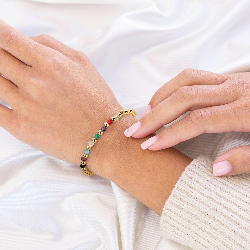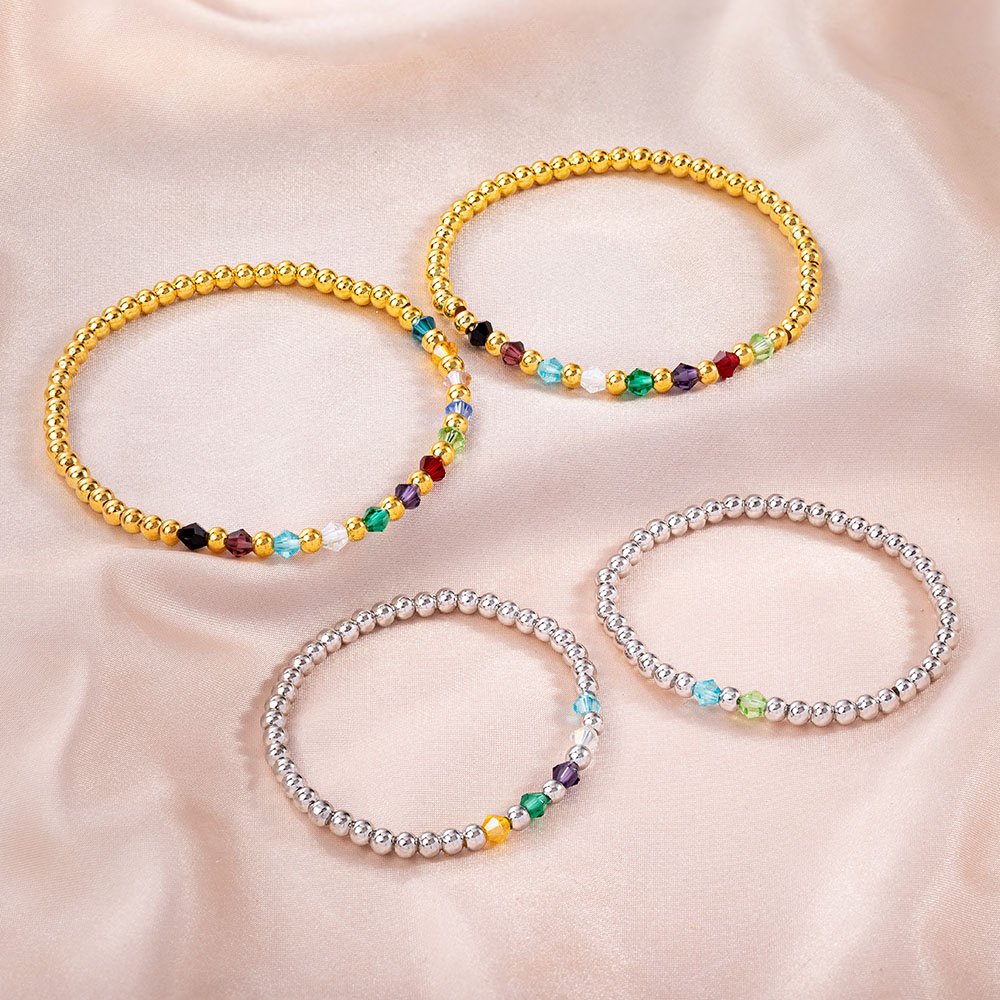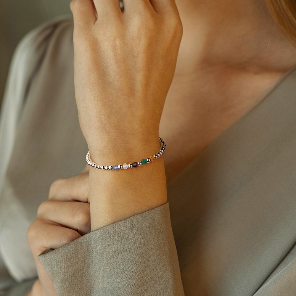 Esta pulsera de piedra de nacimiento familiar ofrece una forma única de mostrar la piedra de nacimiento de 1 a 12 miembros de la familia directamente en tu muñeca. Crea una hermosa amalgama de colores que representan el cumpleaños de cada miembro especial de la familia, convirtiendo una simple pieza de joyería en una narración personal.