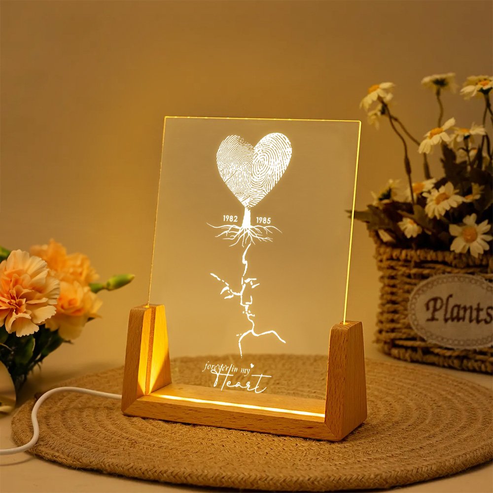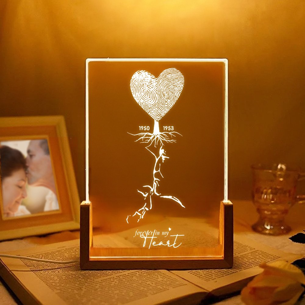 Esta luz nocturna LED está diseñada con un árbol de huellas dactilares, y puedes subir dos fotos de huellas dactilares. También puedes subir una foto de grupo y personalizar el año para que este regalo sea más único y atento.