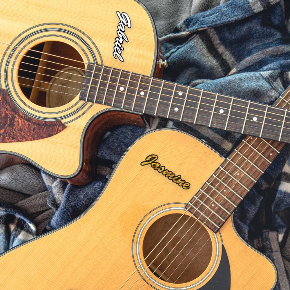 Nuestras pegatinas personalizadas están disponibles en 6 colores, lo que le permite personalizar su nombre en su guitarra. Ofrecen una excelente manera de añadir un toque personal a su guitarra eléctrica, guitarra acústica o bajo, por lo que es verdaderamente uno-de-uno-bueno.