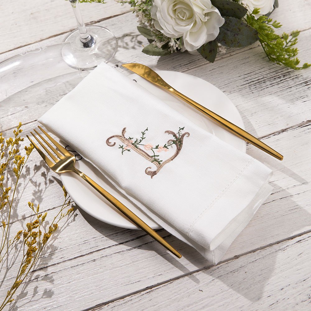 La clásica paleta de colores de las suaves servilletas de lino creará un ambiente festivo y añadirá elegancia a su mesa. Bordado personalizado sólo para usted destaca su gusto personal.