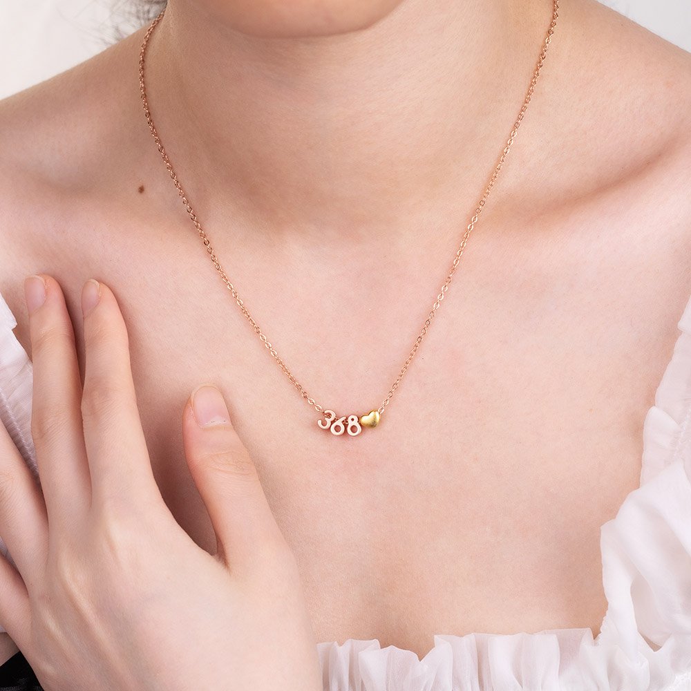 Personaliza un collar con un número que sea especial para ti. Puede ser un número, un día especial, un número de ángel o incluso un capítulo de la Biblia. El corazón se puede personalizar en diferentes colores y se puede colocar en cualquier lugar que desee. Este collar colgante es una pieza minimalista que complementará cualquier look en cualquier ocasión, ya sea como acento cotidiano o como accesorio único para iniciar una conversación.