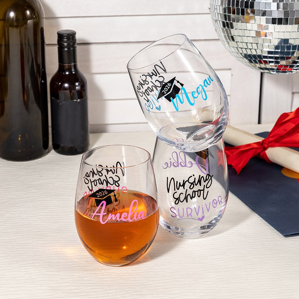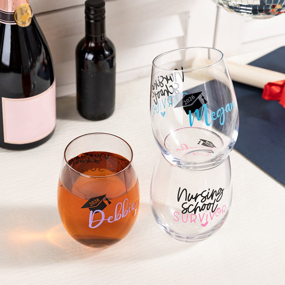 Nuestro vaso de 18 onzas presenta un motivo de birrete de graduación y un diseño personalizado. Personalícelo con el nombre del graduado y el año de graduación para un regalo verdaderamente único y memorable que conmemora el trabajo duro y la dedicación puesta en la escuela de enfermería.
