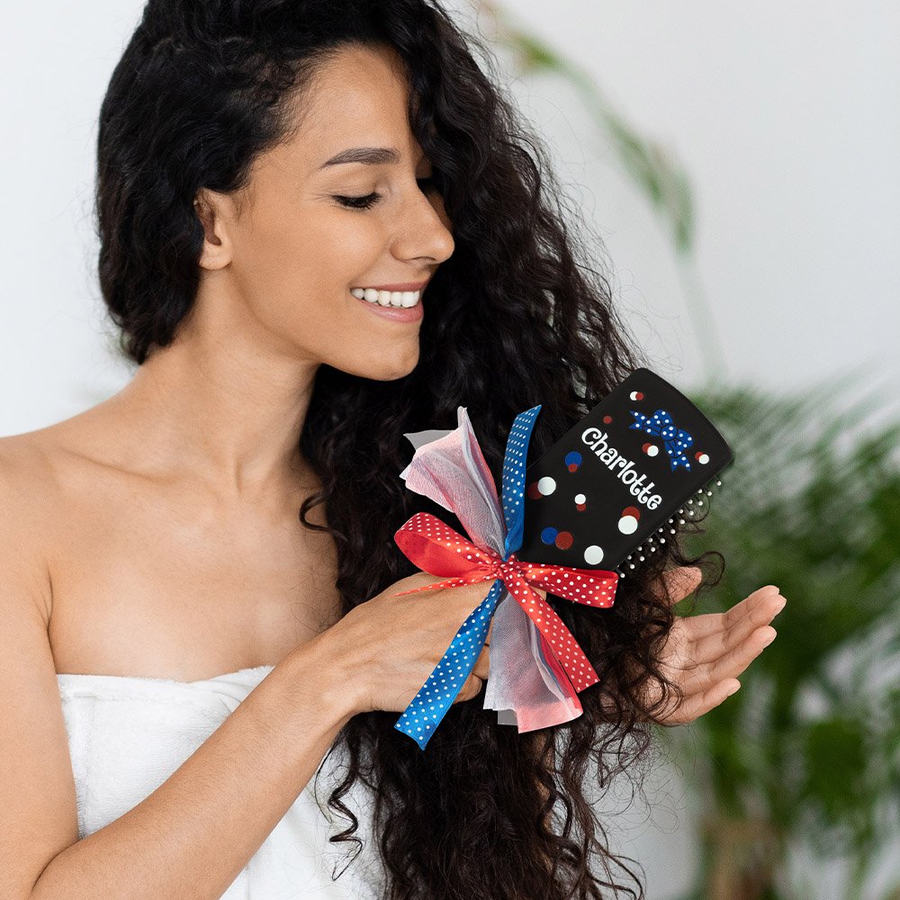 Más que una herramienta de belleza, este peine es una declaración de moda, que fomenta la expresión sin esfuerzo de la personalidad distintiva de cada chica. Las púas suaves y delicadas garantizan un peinado cómodo, convirtiendo el peinado en un ritual placentero.