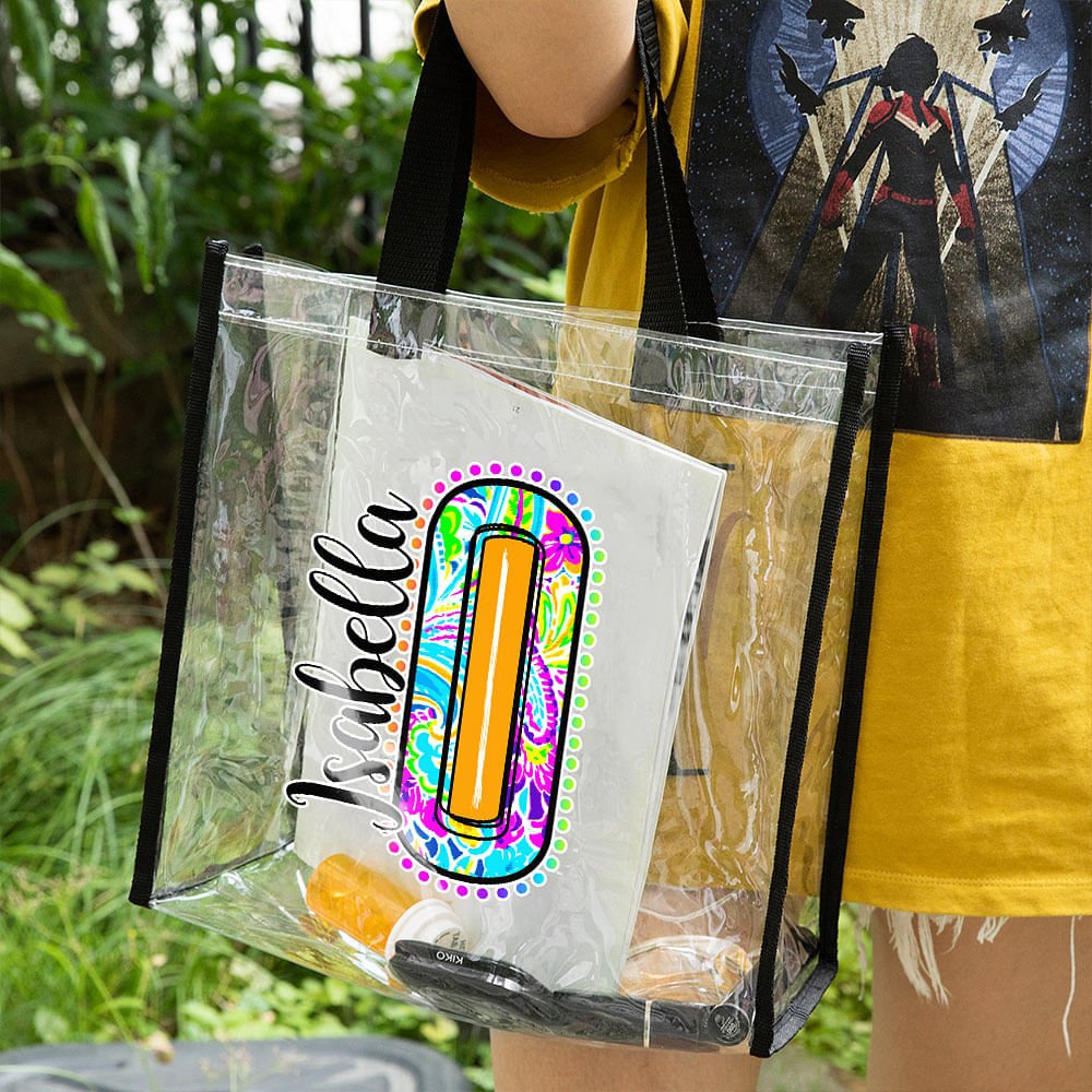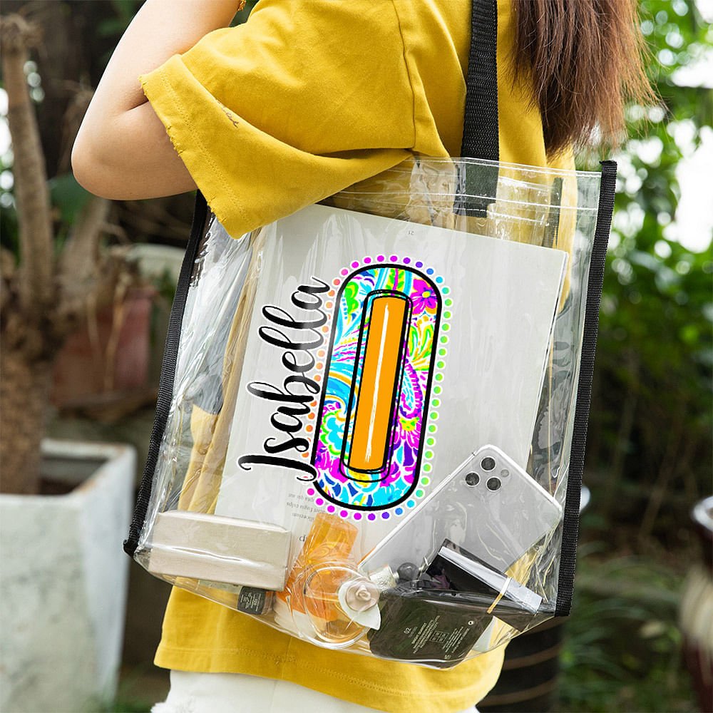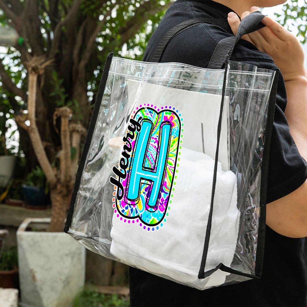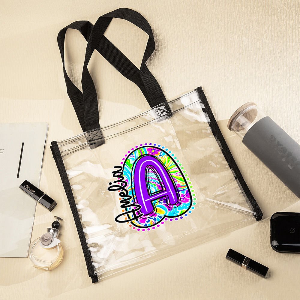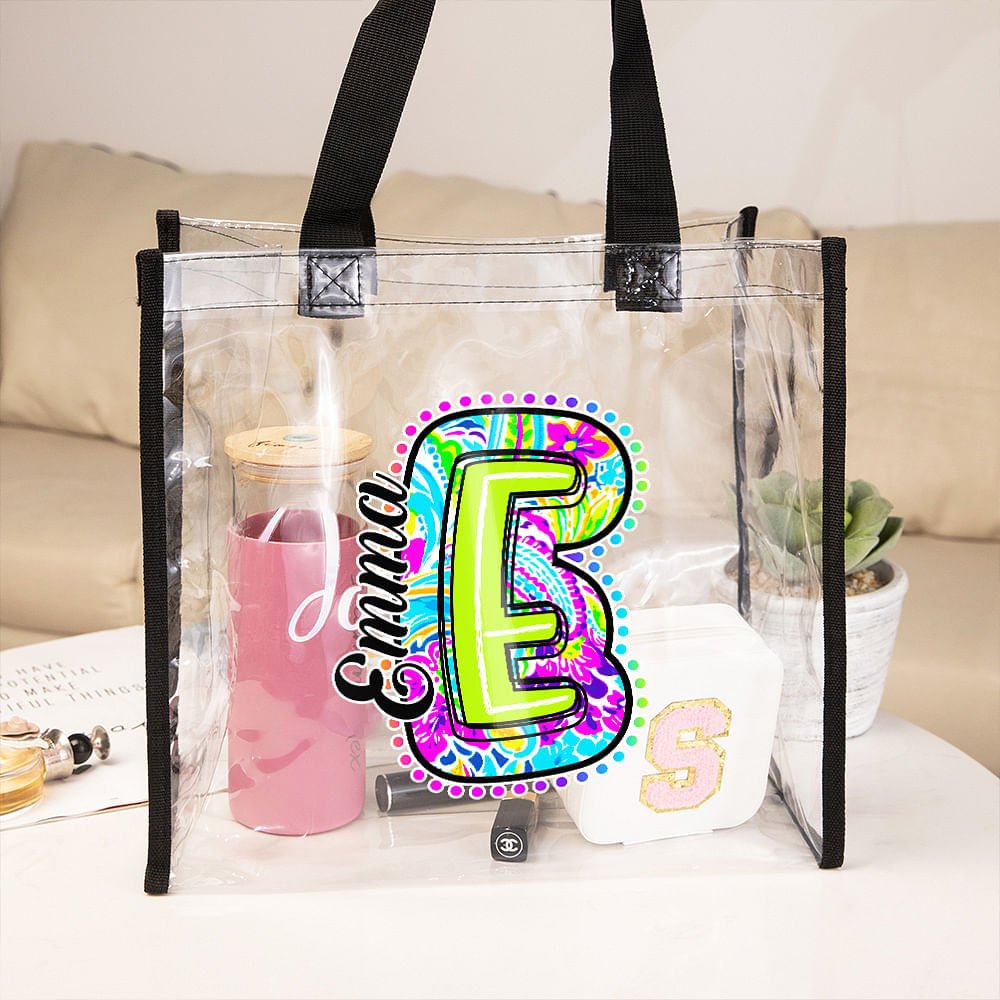 This personalized clear tote bag combines the fashionable Paisley pattern with a personalized letter. Each bag is unique, and you can customize a name to show the wearer's distinctive taste and personality.