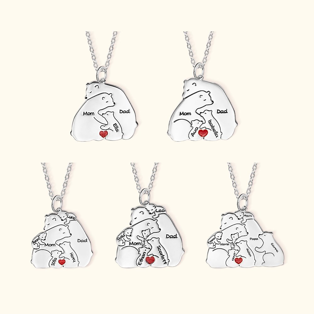 Lo que hace que este collar sea realmente especial es la posibilidad de personalizarlo con los nombres de tus seres queridos. Cada oso puede grabarse con un nombre, creando un recuerdo único y significativo que celebra la individualidad de tu familia. Imagínese la alegría en la cara del destinatario al ver sus nombres o los de sus hijos bellamente expuestos en este regalo.