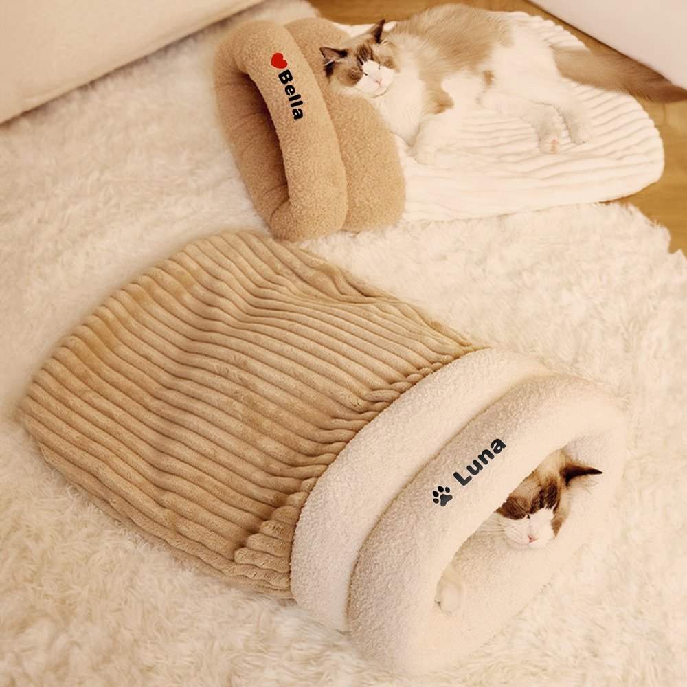 Este saco de dormir para gatos es un regalo ideal para dueños: regálalo en el cumpleaños de su mascota con un "nombre personalizado + nido acogedor" para transmitir bendiciones a su amigo peludo. O regálaselo a un amigo amante de los gatos en cualquier momento para satisfacer sus necesidades de cuidado, haciendo que sienta tu consideración.