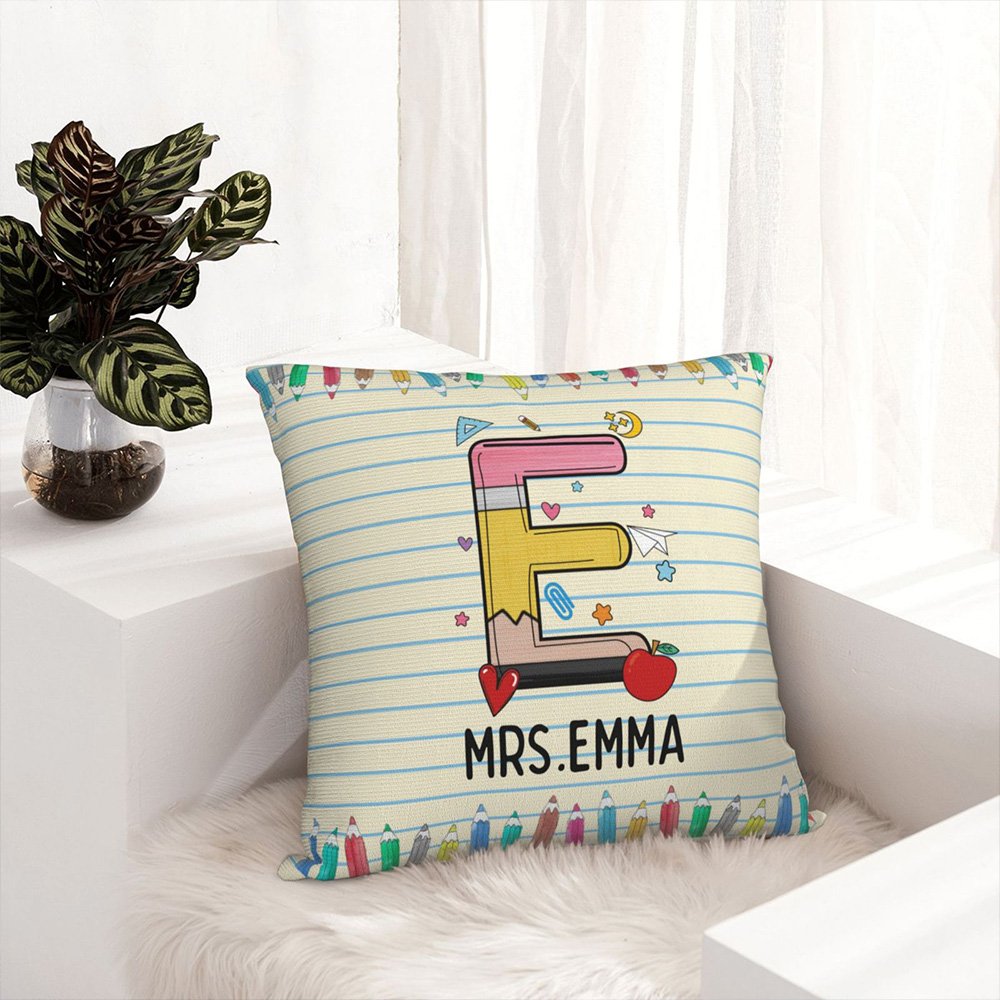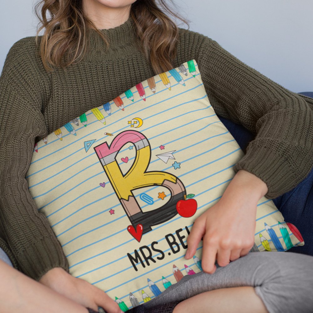 Almohada Personalizada Lápiz Manzana Libreta Maestro con Inicial y Nombre Apreciación Maestro Regalo de Regreso a la Escuela para Maestro