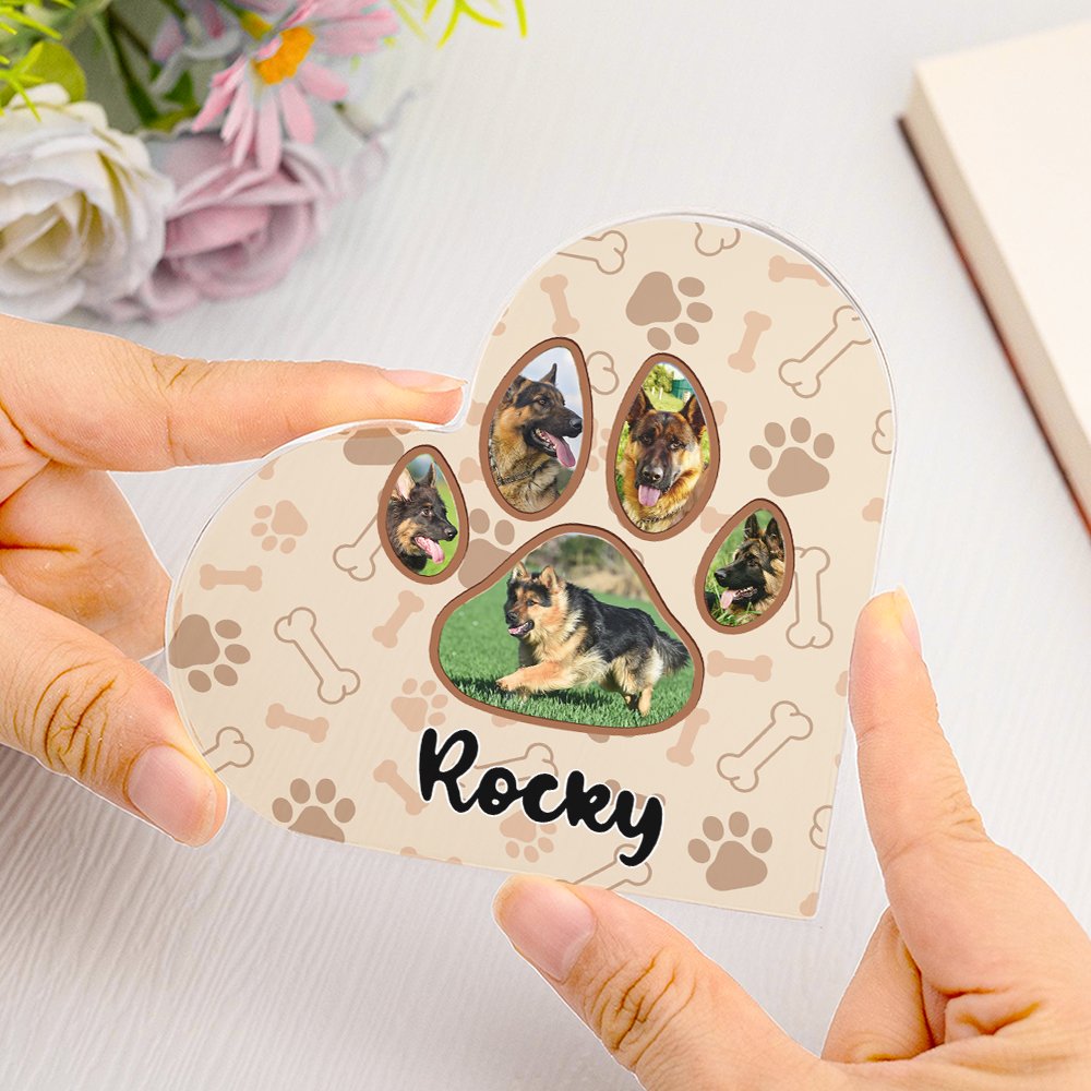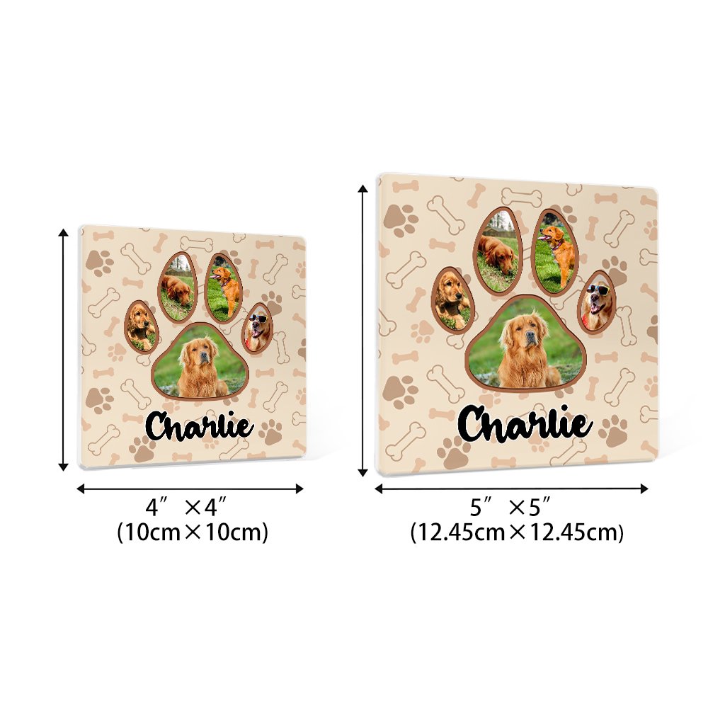 Esta placa acrílica presenta un diseño único de huella de pata de mascota. Con estilos de huella de pata de perro y gato, puedes subir 5 preciosas fotos para enmarcar la imagen de tu mascota en la huella de pata. También podemos personalizar el nombre de su mascota, haciendo de este recuerdo único un vínculo permanente entre usted y su mascota.