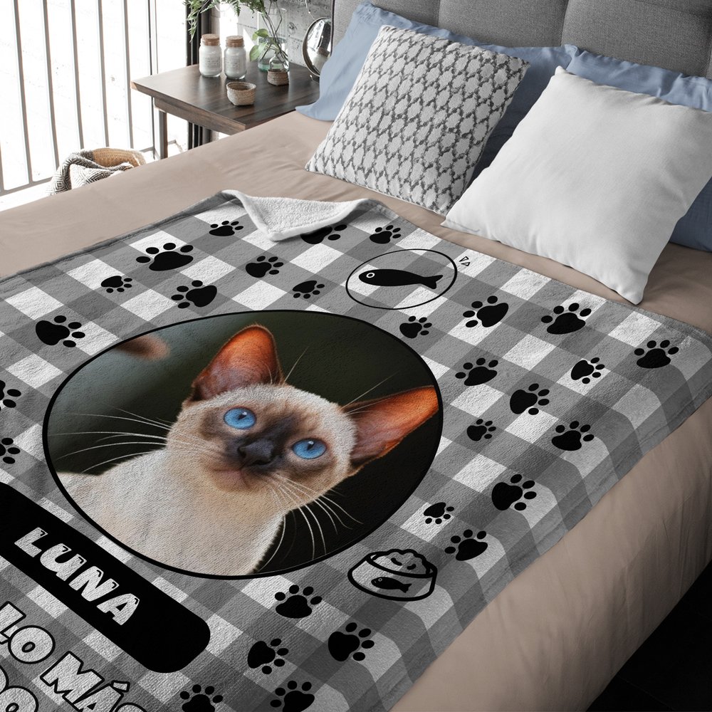 Esta manta presenta un diseño único centrado en la foto de tu querida mascota, lo que te permitirá sentir una estrecha conexión con ella en todo momento. Ofrecemos una variedad de colores de fondo de cuadrícula para elegir, junto con opciones para impresiones de patas de gato o perro. Puedes subir de 1 a 4 fotos para crear sin esfuerzo una pieza de decoración personalizada que muestre a tu adorable mascota, añadiendo un toque cálido a tu espacio.