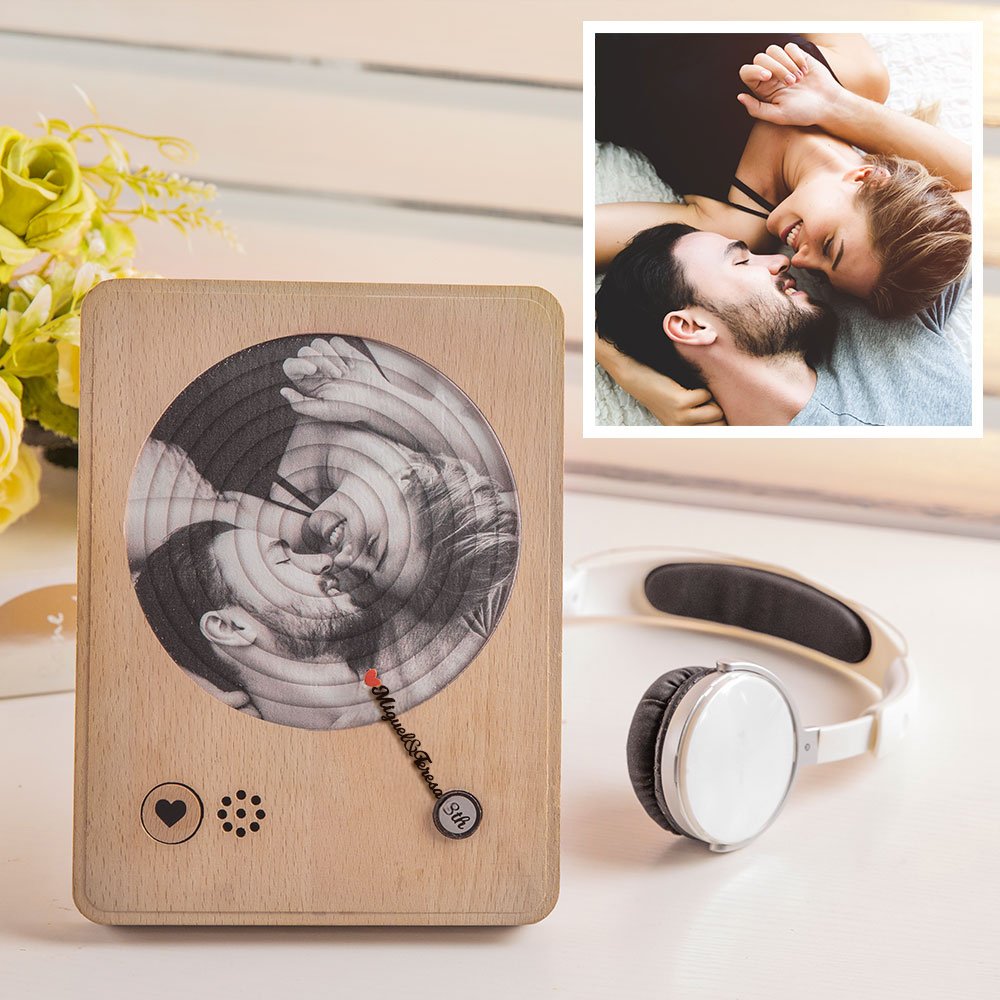El tocadiscos no es solo un instrumento musical, sino también un verdadero contenedor de emociones. Las fotos se graban en la textura del disco de vinilo, creando una pieza única que conserva los bellos recuerdos. Cada detalle está pensado para añadir un significado profundo y personal al regalo.
