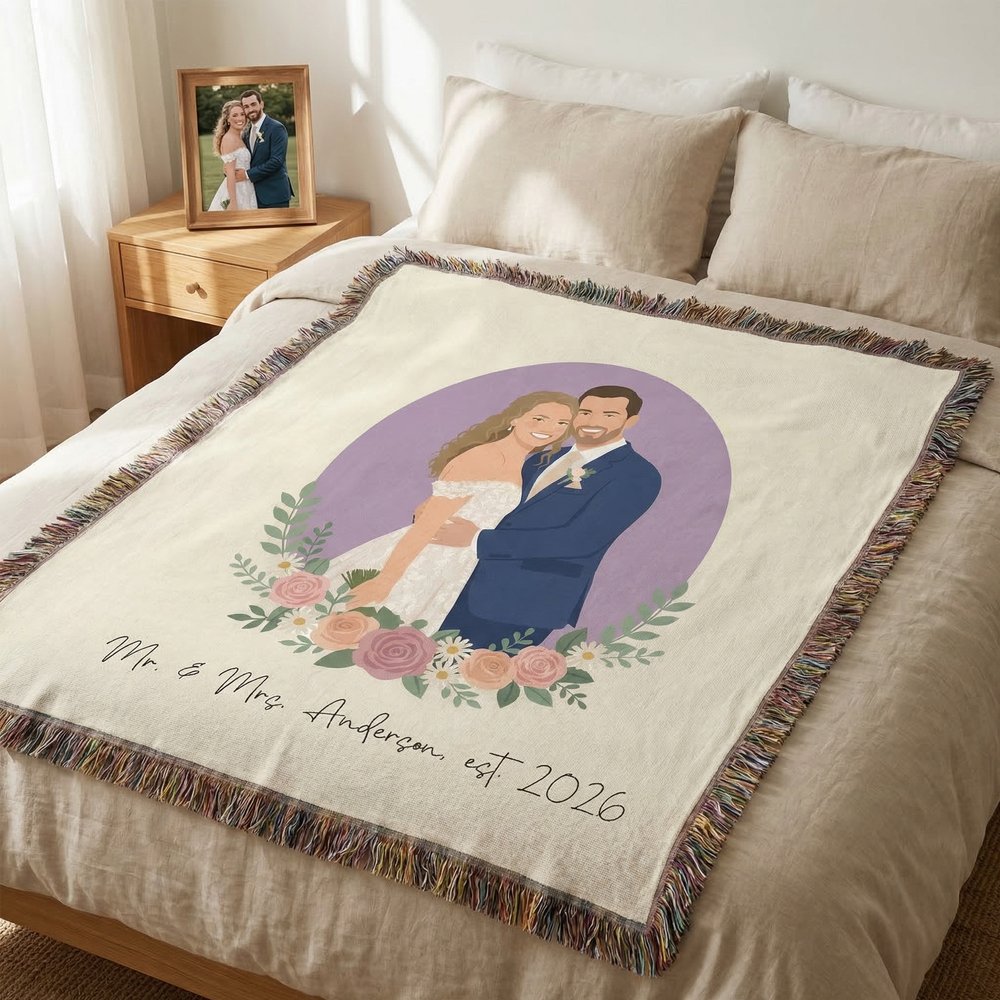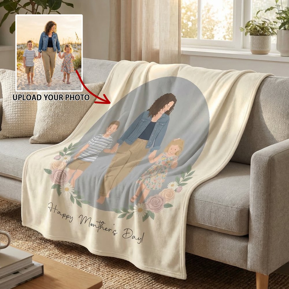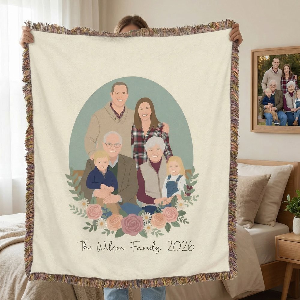 Esta manta personalizada con diseño minimalista de retrato ilustrado plano admite la personalización de cualquier ilustración de personaje/mascota, mensaje de texto y bordes de borla. No solo aporta elegancia a tu hogar, sino que también es como un cálido abrazo desde la distancia, que cuenta la historia del vínculo emocional único entre tú y tus seres queridos.