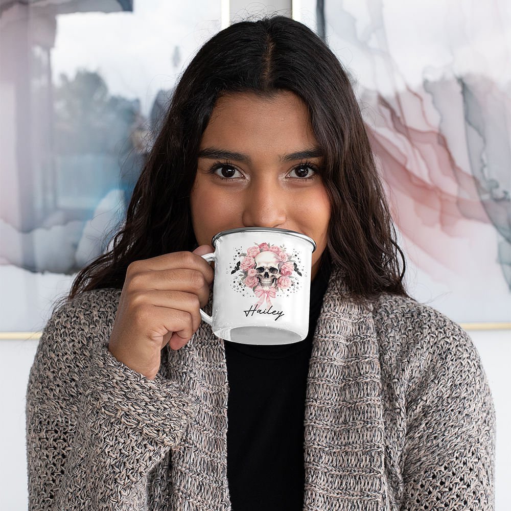 Esta taza esmaltada es ideal para los amantes de las calaveras y los entusiastas de Halloween, y es un regalo fantástico para cualquier ocasión. Ya sea para cumpleaños, vacaciones o simplemente porque sí, es un regalo que seguro que te encantará.