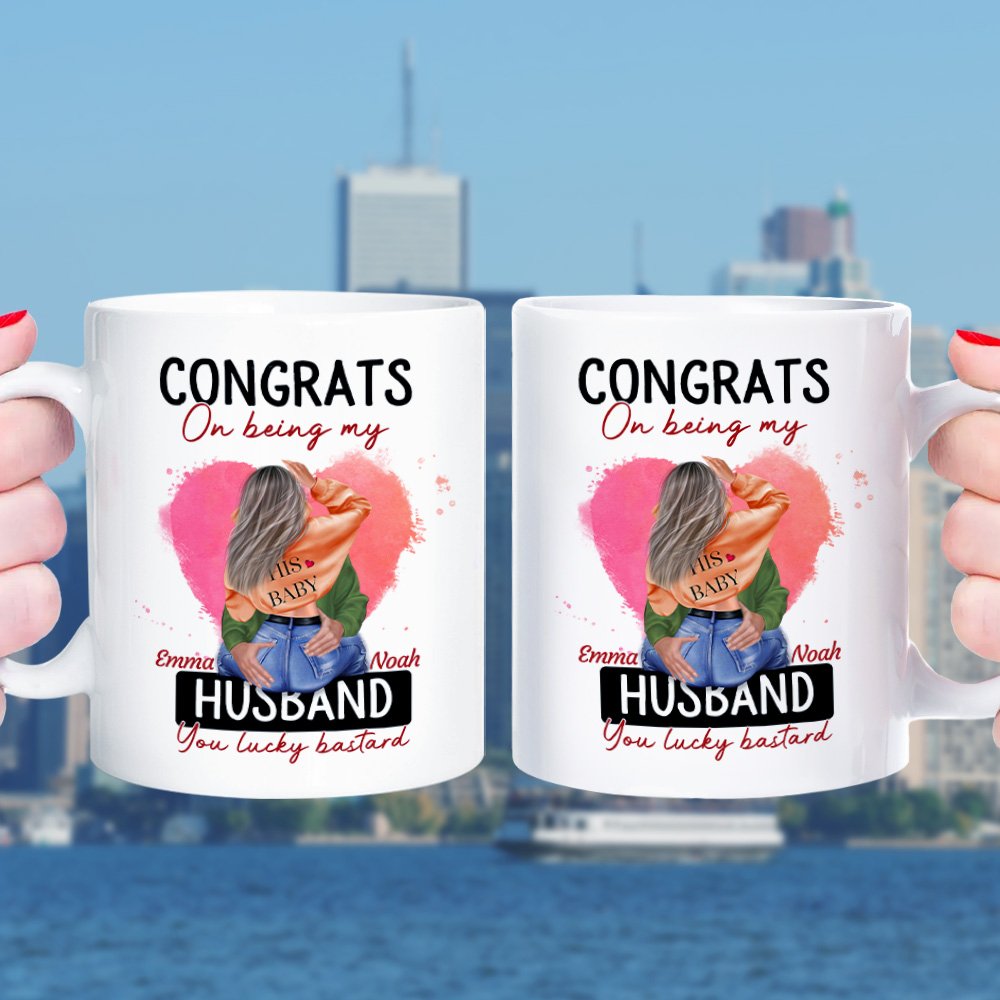 Esta taza se puede personalizar con el nombre de su amante. Además, puede personalizar la imagen de dibujos animados de usted y su amante. El mensaje "Congrats On Being My Husband You Lucky Bastard" está impreso en la taza, por lo que es un recuerdo perfecto para conmemorar su compañerismo y amor, y merece ser apreciado.