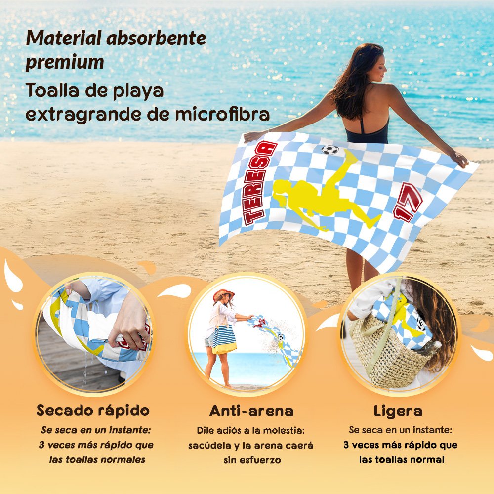 | Característica: | Superabsorbente, de secado rápido, antiarena, duradero y suave, extragrande, ligero y portátil, diseño de personajes de fútbol a cuadros. |