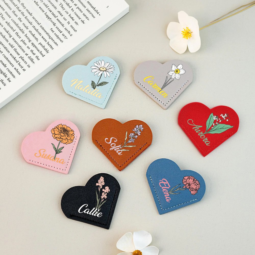 Este marcapáginas presenta una exquisita forma de corazón e incorpora de manera ingeniosa la flor de nacimiento, creando un compañero de lectura único. Puedes personalizarlo con el nombre y la flor de nacimiento de la persona destinataria, y cada flor lleva un significado especial. Además, ofrecemos una variedad de colores tanto para el marcapáginas como para el nombre, adaptándose a tus preferencias.